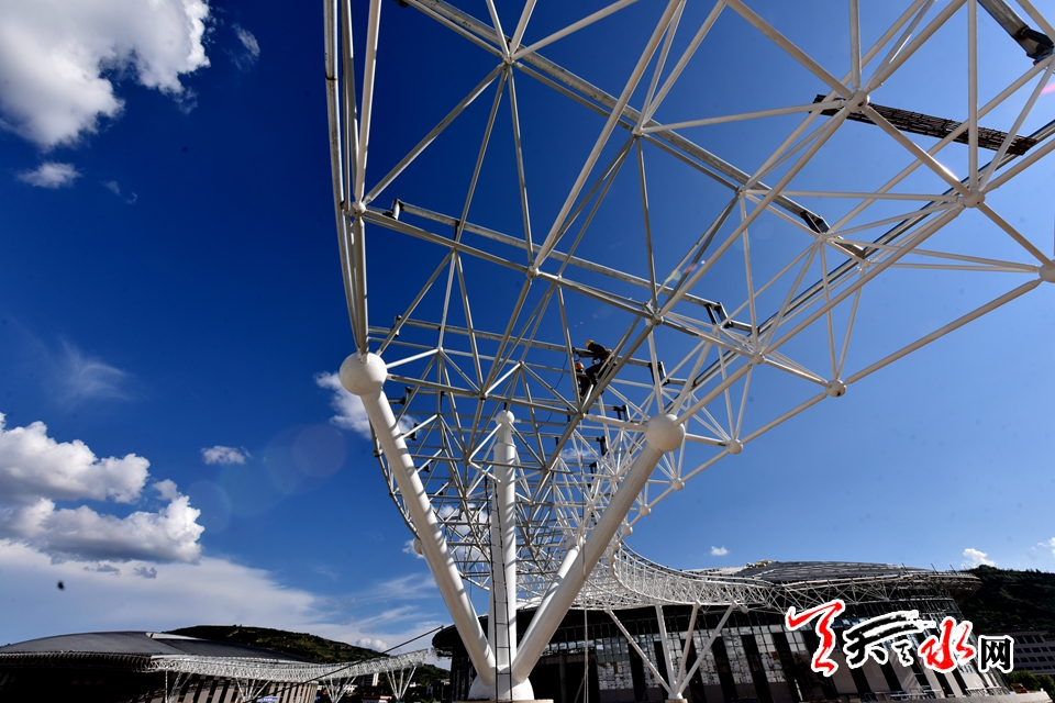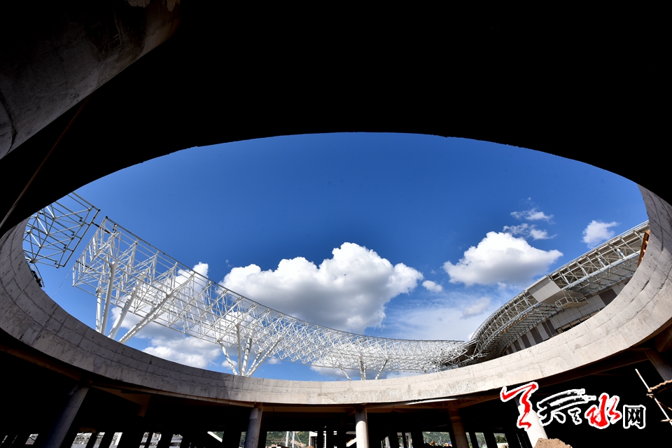 8月9日,时值伏天最热的“中伏”天,奋战在天水市体育中心施工人员在这个加长版的三伏天里,用汗水浇筑起了天水市地标建筑——天水市体育中心的雏形。