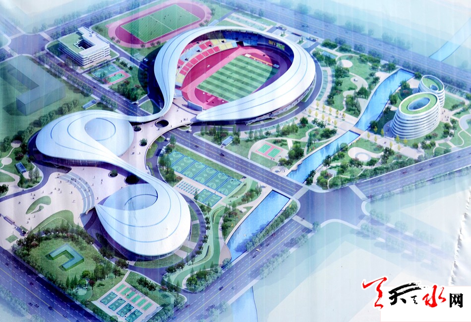 天水市体育中心项目是省、市列重点建设项目之一。该项目选址位于天水商贸城东南面,规划片区为住宅商务中心区。北临天北高速公路,南接羲皇大道,东至罗家沟,西通羲通公交麦积总站。项目总占地面积约436亩,总建筑面积10.5 万平方米,建设内容为“一场两馆,一校一中心”,即:2万座的体育场、5000座的体育馆、1500座的游泳馆、容纳500名学生和70名教师规模的体育运动学校、全民健身中心及地下停车场。项目分三个功能区:体育赛事服务区、全民健身服务区、体育教学训练区。估算总投资6.43亿元。