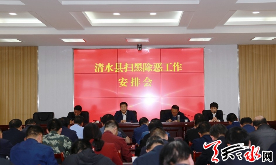 市人大常委会副主任、清水县委书记刘天波,县委常委、副县长秦永斌,县委常委、政法委书记王怀珍,副县长、县公安局长李宝玲,县扫黑除恶专项斗争领导小组成员单位主要负责人,各乡镇党委书记,扫黑办全体干部在清水分会场参加会议。