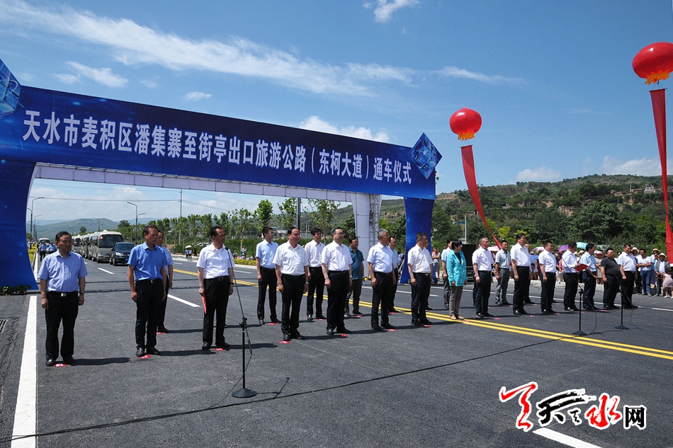 省人大常委会副主任吴明明参加开通仪式。市委书记王锐宣布麦积区潘集寨至街亭出口旅游公路(东柯大道)建成通车。