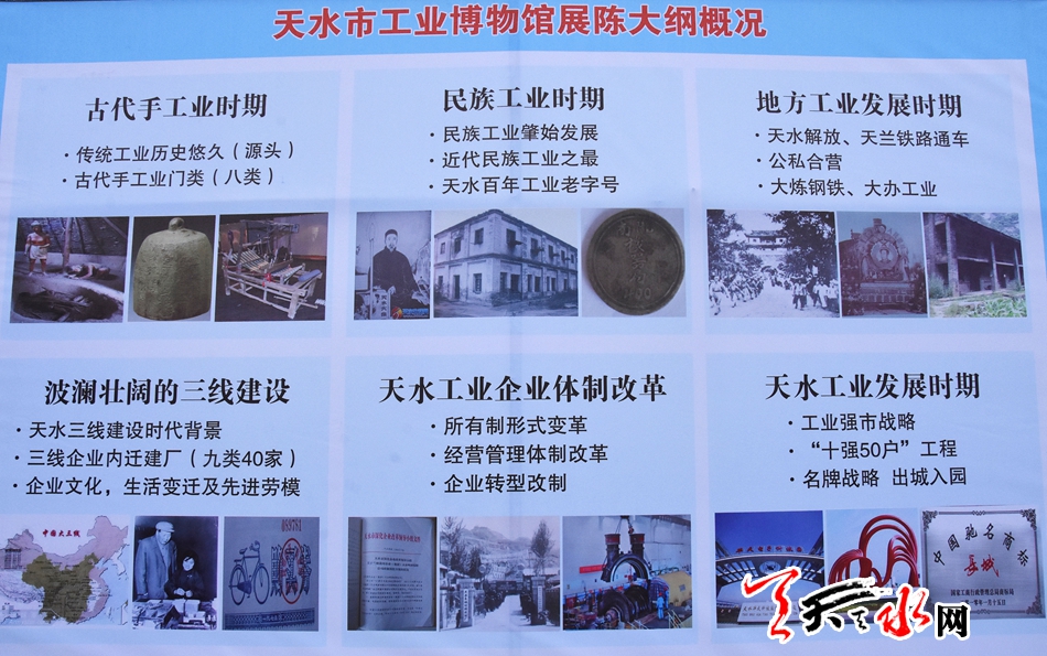 天水长控公司出城入园搬迁后,我市利用原有老旧厂房及场地实施了天水市工业博物馆建设项目。王军强调,要在全面加快建设进度的同时,高度重视做好博物馆展陈工作,使其全面涵盖航空维修、数字信息、装备制造、电工电器等重点优势产业,力求全方位、多角度展示天水工业发展历程和成就。