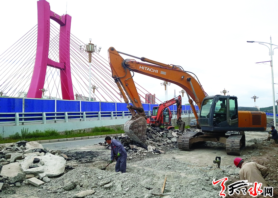 天天天水网讯【记者蔚军平】 7月7日,记者在秦州区藉河南路红桥南端看到,施工机械正在已封闭的区域内进行改迁地下管线的前期作业,随着红桥南接线工程的开工建设,红桥“断头路”的现状将成为历史。