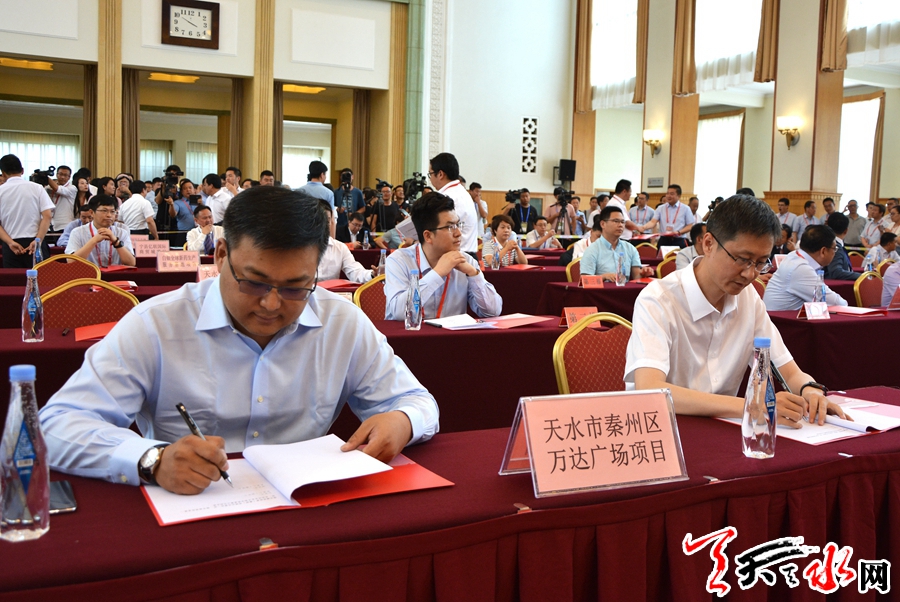 在7月8日下午举行的集中签约仪式上,包括天水世茂国际生态城项目、嘉峪关粤通旅游开发项目、张掖智能终端产业项目、兰州宝能物流供应链项目、白银全球新药生产服务基地项目在内的33个重点招商引资项目现场签约。这些项目涉及装备制造、通道物流、文化旅游、职业教育等领域,都属于全省重点发展的十大绿色生态产业项目。其中,我市共有6个重大项目签约,分别是:投资50亿元的秦州区万达广场项目、投资50亿元的麦积区万达广场项目、投资160亿元的恒大•天水东柯休闲小镇项目、投资30亿元的天水江南市场项目、投资50亿元的天水•白鹿仓国际旅游度假区项目、投资75.3亿元的天水世茂国际生态城项目。