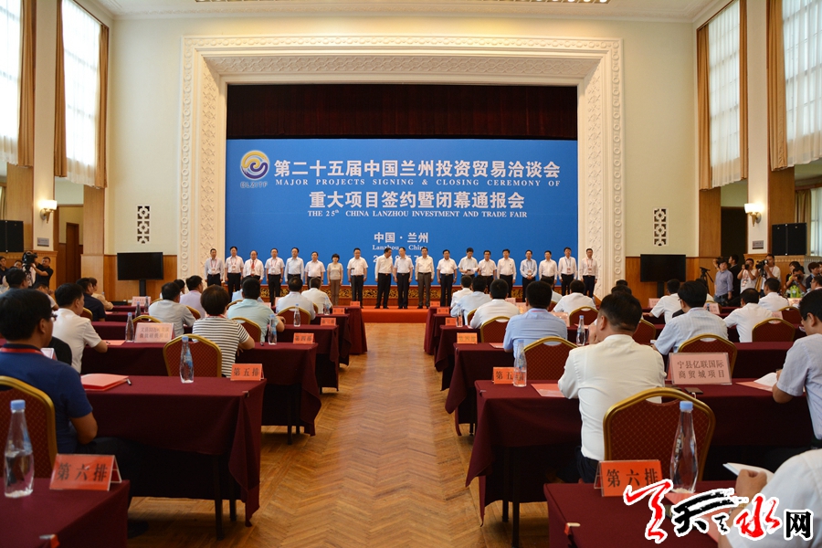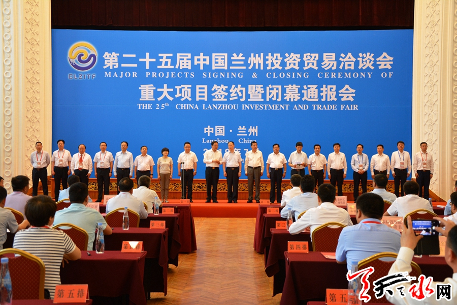天天天水网讯(全媒体记者 李欣桐)7月8日,为期五天的第二十五届中国兰州投资贸易谈洽会圆满落幕,重大项目签约仪式暨闭幕通报会在兰州市宁卧庄宾馆举行。集中签约仪式上,全省共签约33个重点招商引资项目,其中,我市在成功签约6个项目,总投资达415.3亿元。