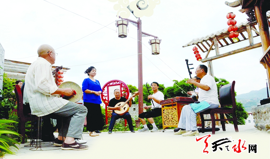 麦积区新阳镇胡家大庄的牛乳观后是村里的百姓大舞台,台下的广场开阔,随广场一侧而下,就是村里这几年新建的公园,水流潺潺,鸟语花香,别有一番风景。