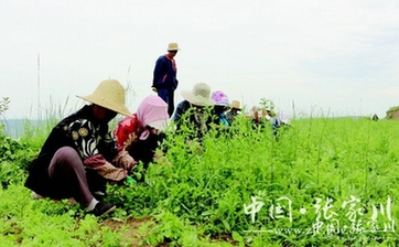 放眼中药材种植基地,几十位工人排成一排,她们低头清除着地里的杂草在她们背后,杂草都被码放田埂边,只留下一片绿油油的党参蔓藤互相缠绕,长势极旺。微风拂面,空气中弥漫着阵阵青草的味道。采访中记者得知,这些工人大多是周边村落的贫困户,由于中草药种植每年要除两到三遍杂草,且从种植到秋季收割,种植基地常年需要人打理,因此她们是合作社经常雇佣的工人,每月能领两到三千元的工资。
