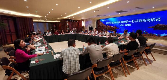 王军市长在座谈上介绍了天水市的基本情况和招商的方向及重点。他说,天水是甘肃第二大市,也是甘肃的东大门,历史悠久,文化深厚,生态环境良好,区位优势、交通优势突出。随着“一带一路”、新一轮西部大开发、关中平原城市群建设、国际陆海贸易新通道建设等国家战略的深入实施,国家和省上一系列利好政策的出台,一大批重点项目的谋划布局,天水迎来前所未有的发展机遇。近年来,全市上下坚持把招商引资作为拉动经济高质量发展的动力引擎,在深化“放管服”改革上做文章,树立“只要你带着资金来,剩下的一切交给我”的理念,建立代办制、联审联批制、保姆式服务等制度,出台了一系列招商引资优惠政策,千方百计优化营商环境,招商引资的“洼地效应”不断凸显,引进实施了一批符合天水产业发展实际、带动作用明显的新项目、好项目、大项目。万达集团、恒大集团、绿地集团、世茂集团、华侨城集团等一批世界500强企业纷至沓来,为全市经济社会高质量发展注入了强大活力。王军市长恳切邀请在浙各位企业家多来天水现场考察,对接交流,进一步深化了解,推动一些有意向的项目落地建设。在浙企业家代表也纷纷表示,近期将会派出专门团队,去天水深度考察,寻求合作,共赢发展。