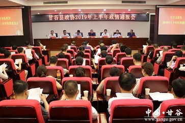 天天天水网讯 据甘谷县融媒体中心消息,7月18日,县政协召开2019年上半年政情通报会,主要任务是听取全县上半年经济社会发展情况,使政协委员和社会各界人士全面知情明政,广泛凝聚合力,扎实有效履职,着力助推全县年度目标任务圆满完成。