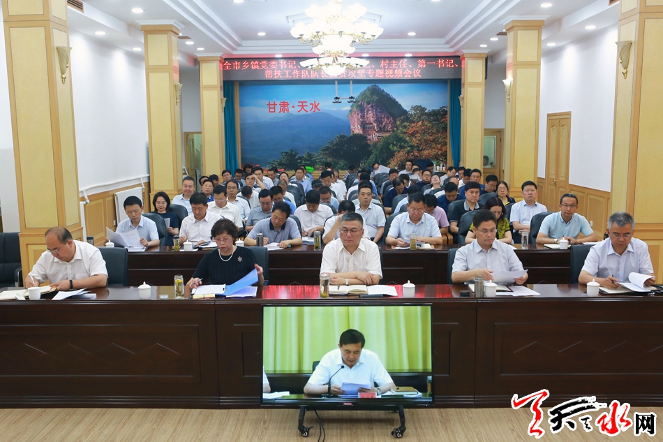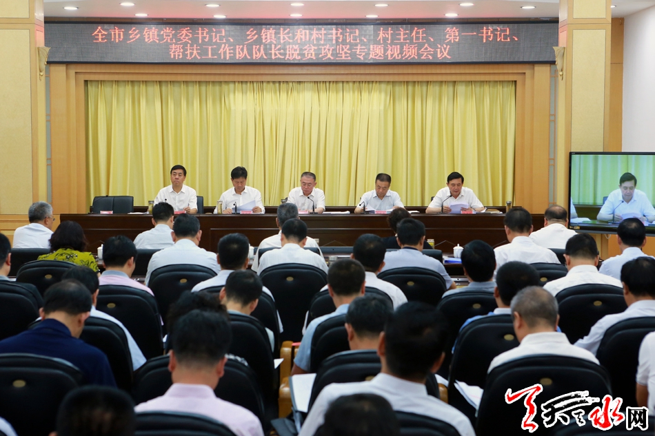 天天天水网讯【全媒体记者吴丽娜】7月21日,我市召开全市乡(镇)党委书记、乡(镇)长和村书记、村主任、第一书记、帮扶工作队队长脱贫攻坚专题视频会议。市委书记王锐主持会议并讲话。他强调,要深入学习贯彻习近平总书记关于脱贫攻坚的重要论述,坚决落实中央和省、市委决策部署,准确把握形势任务,深刻反思差距问题,压紧靠实各方责任,持续深入推进我市脱贫攻坚整改清零“百日会战”,坚决打赢打好脱贫攻坚这场硬仗。