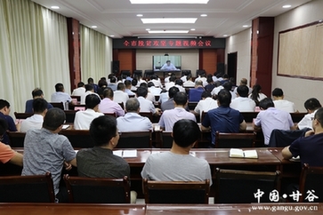 会议传达了省委书记林铎在《省政府调研组在平凉、庆阳两市入户调研脱贫攻坚情况的汇报》上的批示和省委办公厅《关于对全省脱贫攻坚领域不担当不作为问题问责处理情况的通报》,通报了全市脱贫攻坚彻查清零专项督查情况,宣读了《天水市脱贫攻坚村户档案资料“规范周”工作方案》。