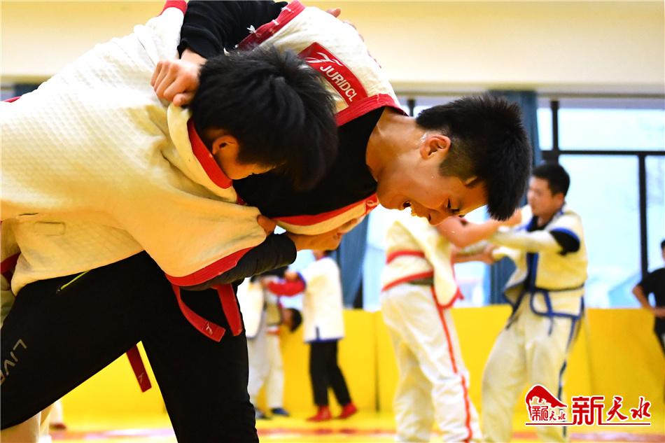 体校少年的一天,是从天不亮就开始的。清晨6:15,伴随着嘹亮的起床号,天水市体校16支训练队的500多名学生开始了一天的训练和学习生活。6:30,夜色还未褪去,凛冽的寒风吹痛脸庞,寂静的校园里,一下子变得热闹起来。伴着晨训声,同学们开始跑步、压腿、基本功练习、专项力量练习……为一天的训练做好准备。体校生的轨迹很固定:起床—早操—洗漱—早餐—早自习—上课—午餐—午休—训练—晚餐—上课,22时准时关灯休息。每天下午14:50至17:50,是体校学生集中训练的时间。田径场上,一名队员蹲下身体,系紧鞋带,深呼一口气,伴着寒风迈出步伐;跆拳道馆里,清晰地传来拳击手套“嘭嘭”的撞击声;篮球馆内,拍球声声声入耳,队员们正进行着攻防对抗、基本技术等训练;武术馆里,队员们优雅“起飞”,力与美得以充分的展现……然而,在看得见的训练背后,是常人无法体会的艰辛。对于每一名体校生来说,在走上体育训练这条路后,每天都注定与汗水和泪水相伴。在风雨中奔跑,在拼搏中前行。他们承载着家长、教练的希望,他们无数次跌倒、爬起,依然咬牙坚持,有时还要忍受着伤痛折磨,只为追求心中的梦想。因为,在体校少年的眼里,挥洒汗水,是青春最美的模样。□新天水记者 周文涛/文图