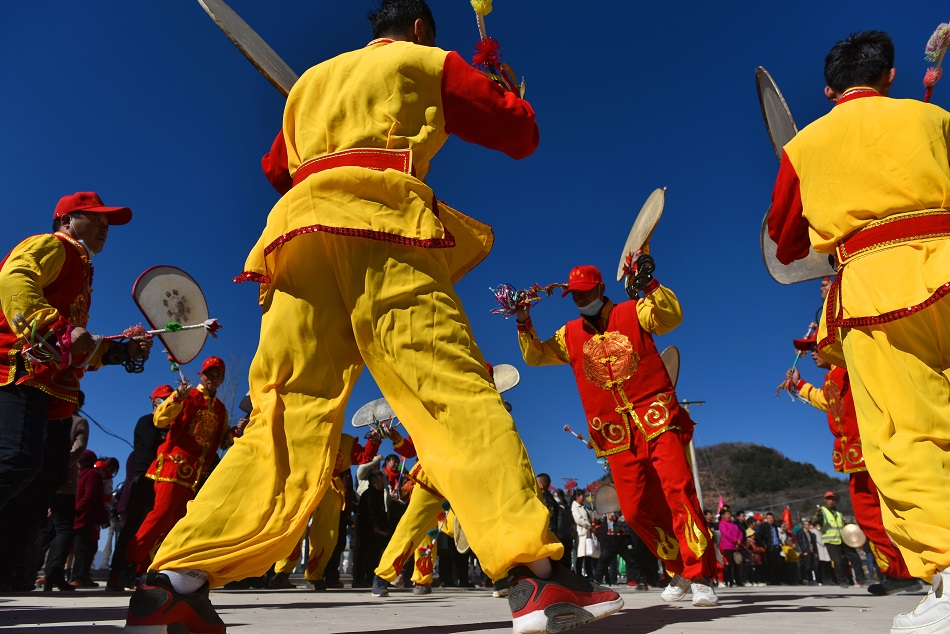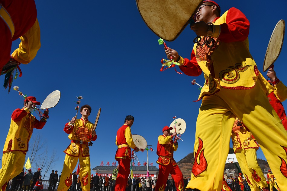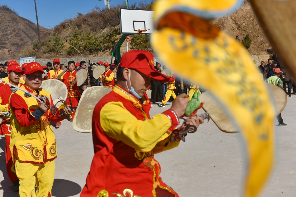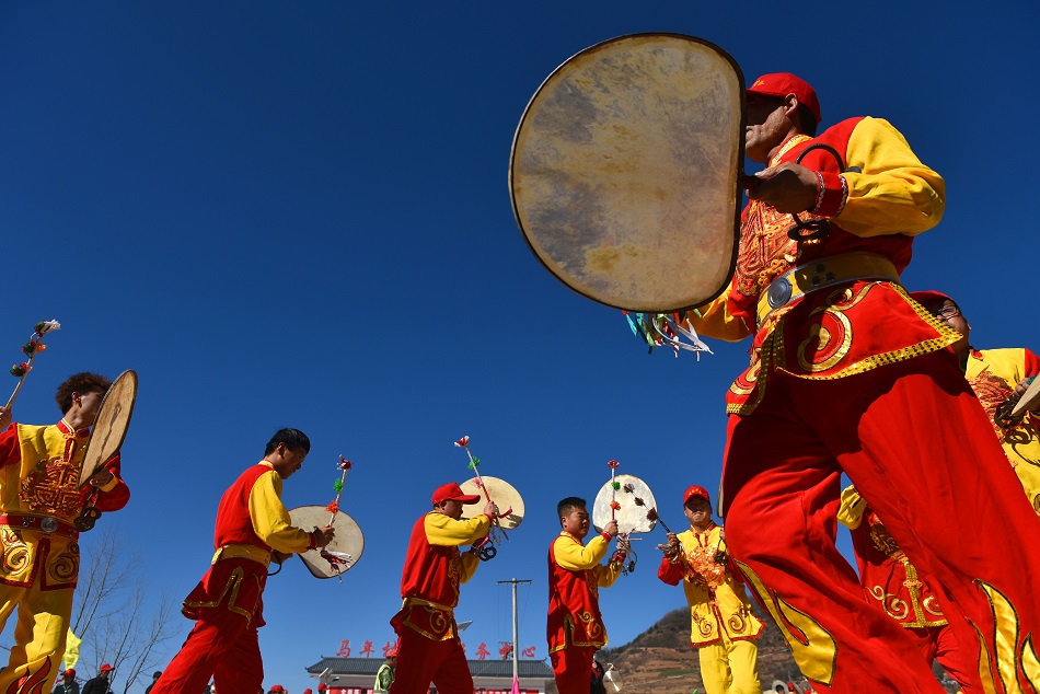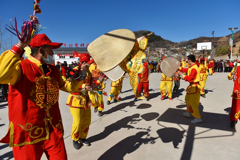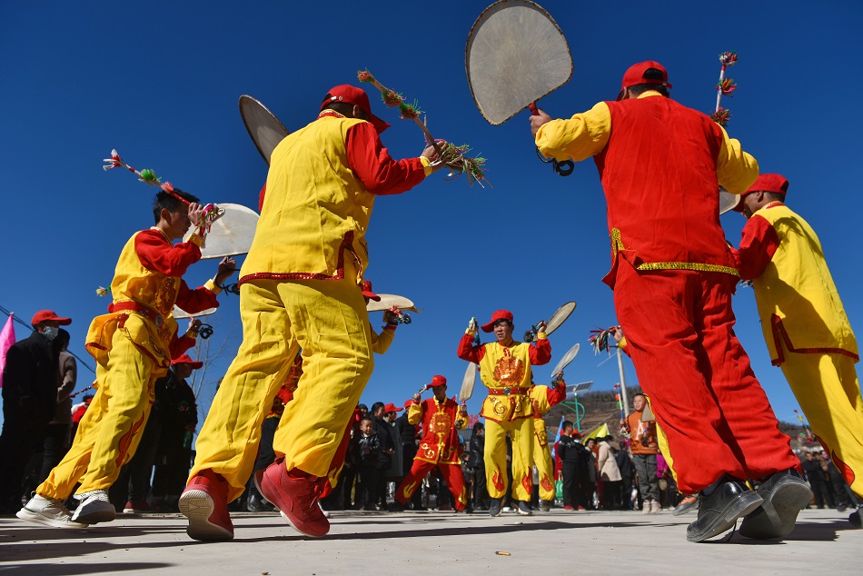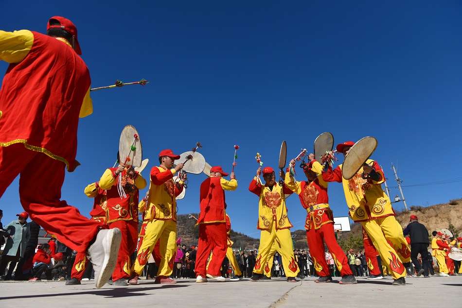 武山县龙台镇马年村村民正在进行旋鼓舞表演