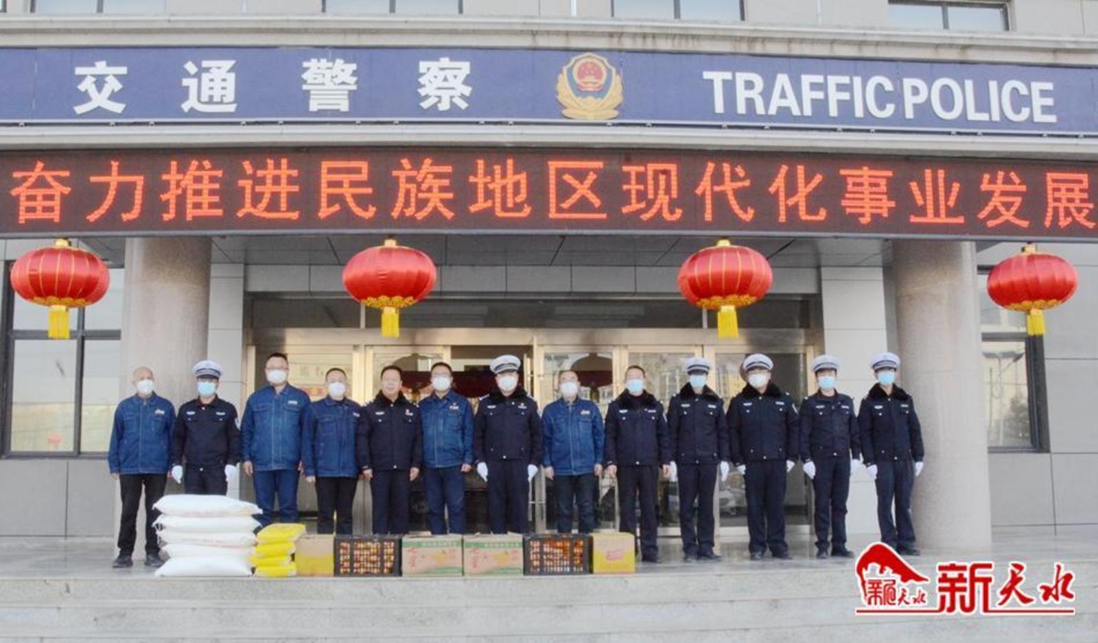 新天水讯【记者余碧波】1月10日下午,为庆祝第三个“中国人民警察节”,张家川回族自治县供电公司负责人一行5人来到张家川县公安局交警大队,为大队全体民辅警送上节日祝福,并赠送慰问品。