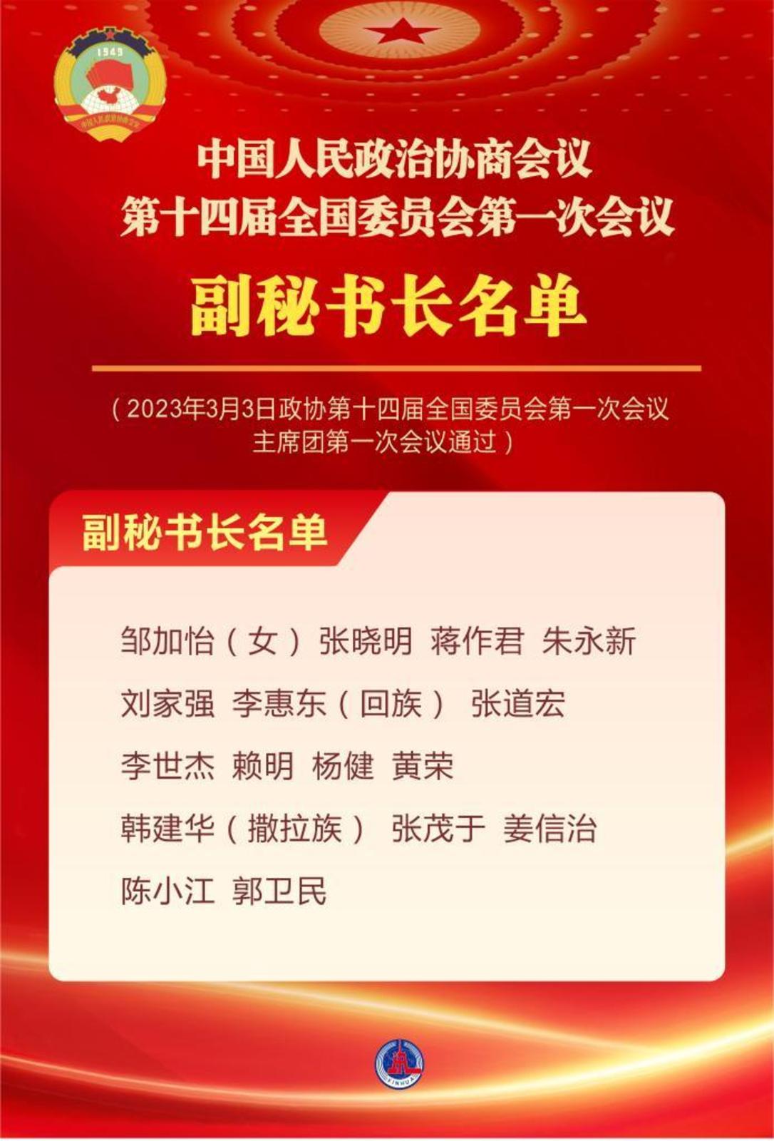中国人民政治协商会议第十四届全国委员会第一次会议副秘书长名单