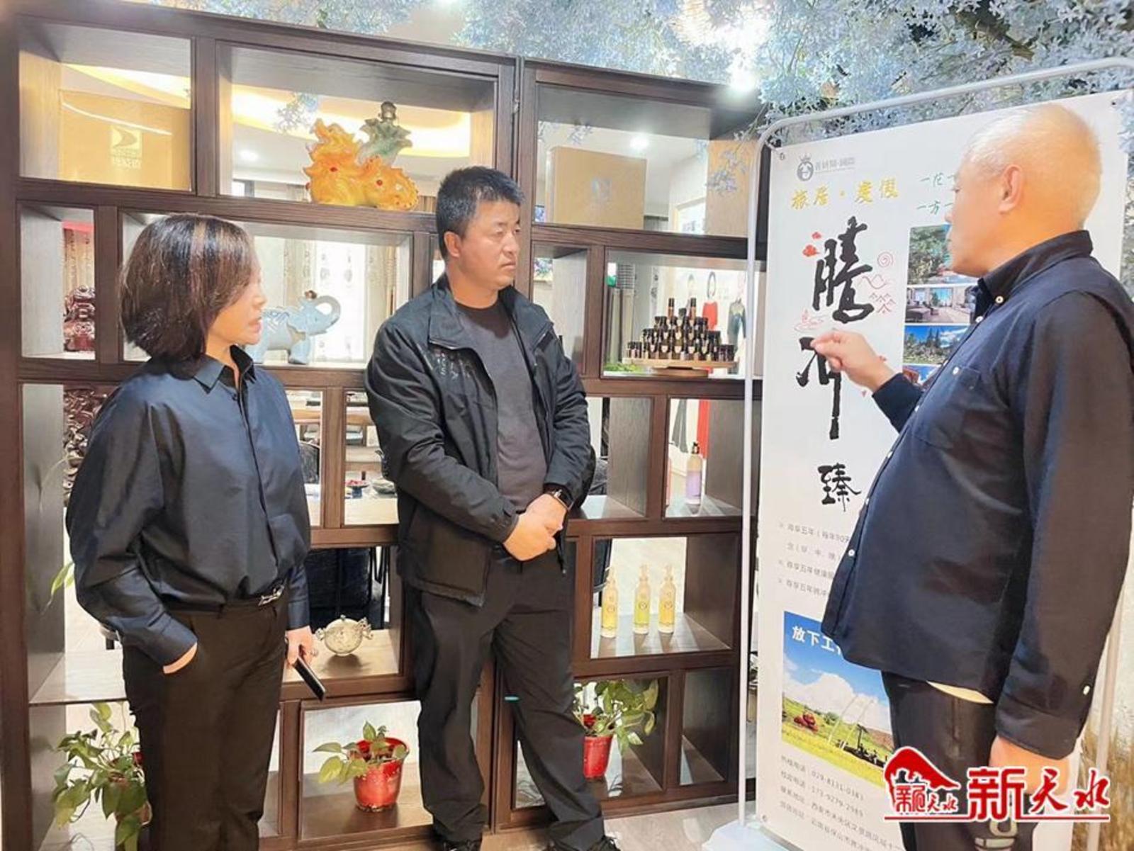 新城乡领导和西安善妍开•国际健康管理有限公司负责人进行项目对接,介绍了清水县的生态资源、特色农产品、康养旅游发展情况。该公司负责人表示,近期将赴清水县就康养文旅路线、农特产品的包装、康养品牌的推广洽谈签约。