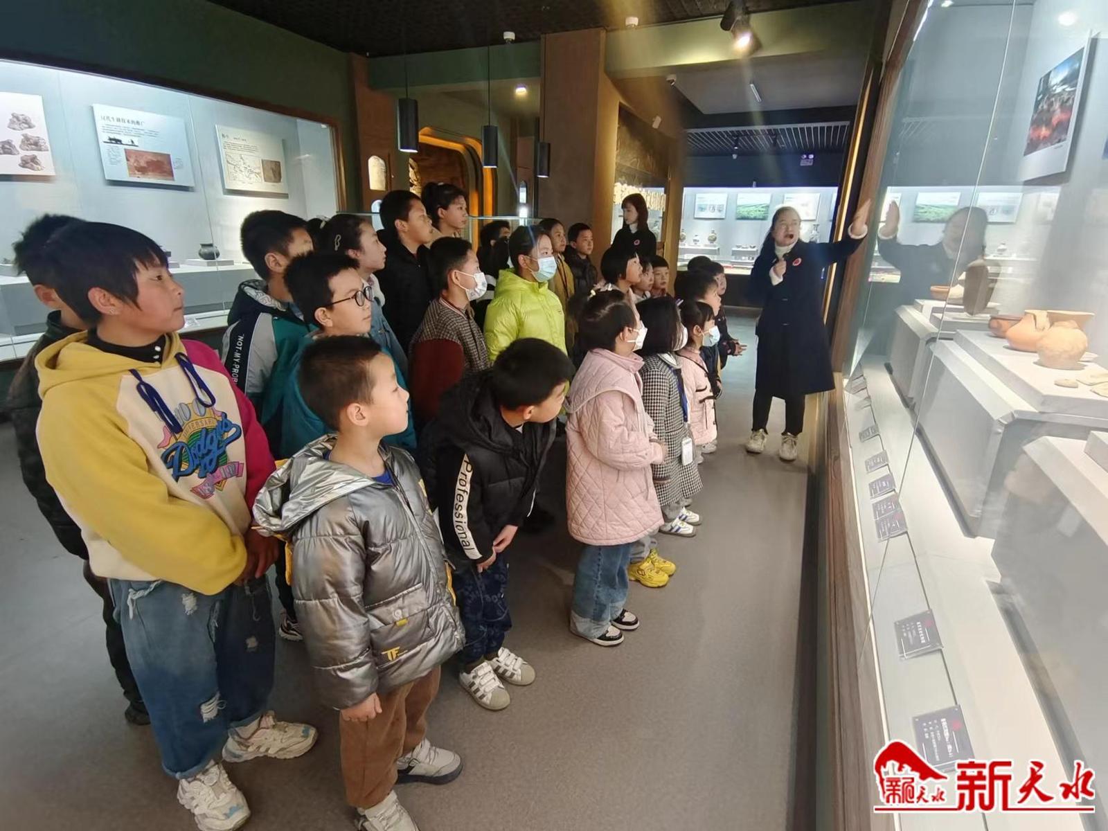 活动伊始,讲解员组织孩子们参观博物馆基本陈列和临时展览,了解张家川历史文化和古代钱币的出现、演变、发展以及艺术魅力。