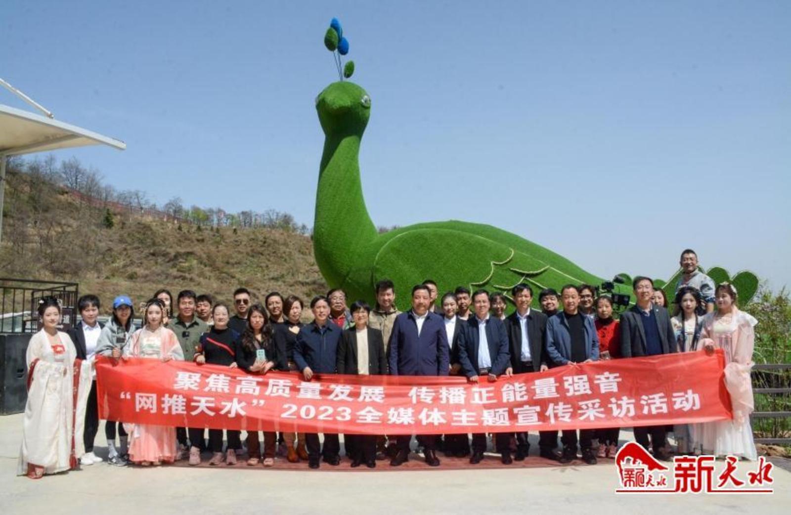 新天水讯【记者马凯】4月15日,由市委宣传部、市委网信办主办的“聚焦高质量发展,传播正能量强音——‘网推天水’2023全媒体主题宣传采访活动暨短视频大赛”在花舞南山启动。全市各界30余家网络媒体从业者以及网络大V名人共计50多人参加启动仪式。