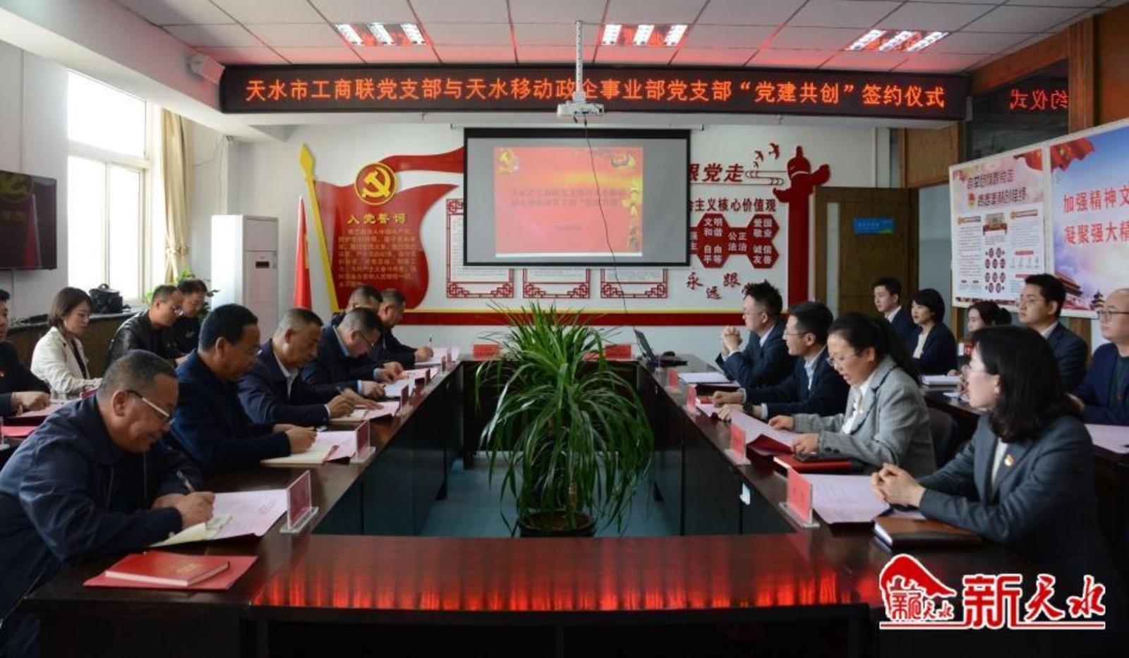 签约仪式后,天水市工商业联合会与天水移动分公司共同开展了党建联建共建主题实践活动,签订《结对共建协议书》,现场观摩天水移动公司5G智慧体验厅。市工商联党支部全体党员、结对共建长开社区离退休党支部党员代表,天水移动政企事业部党支部党员代表参加此次活动。