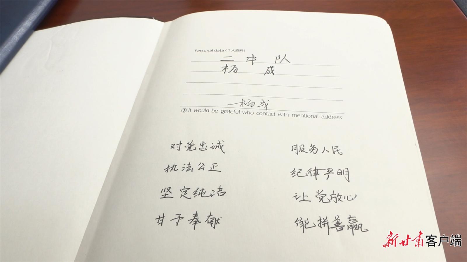 铮铮誓言,在接力中传承,也定格在他的笔记本中。杨成的工作笔记本换了一本又一本,这句誓言却始终写在扉页。