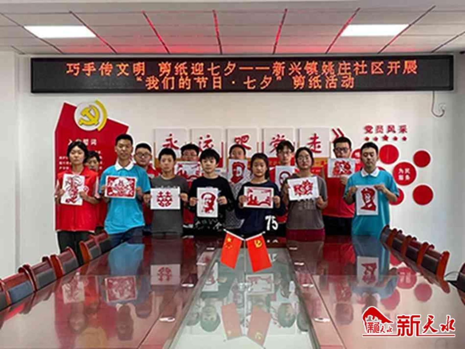新天水讯 为继承弘扬优秀传统文化,深入挖掘传统节日的文化内涵和精神实质,持续推动“我们的节日”——七夕节的传承与创新。8月21日,甘谷县新兴镇姚庄社区新时代文明实践站开展以“巧手传文明 剪纸迎七夕”为主题的非遗进社区活动,让广大居民在剪纸过程中感受传统文化的艺术魅力。