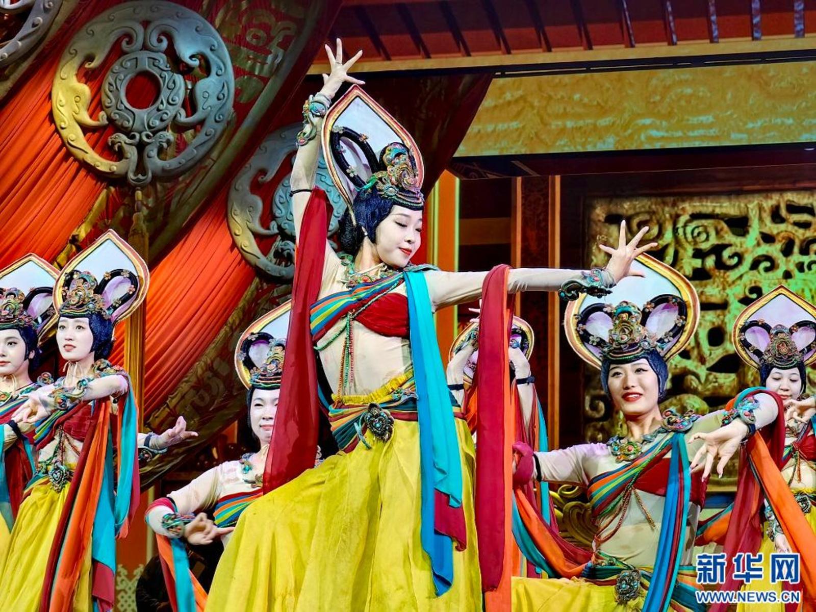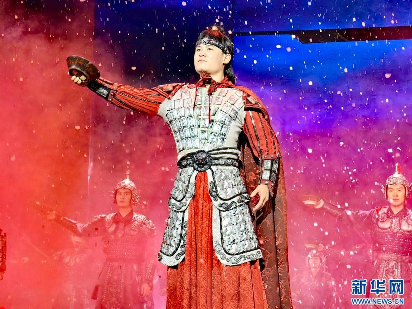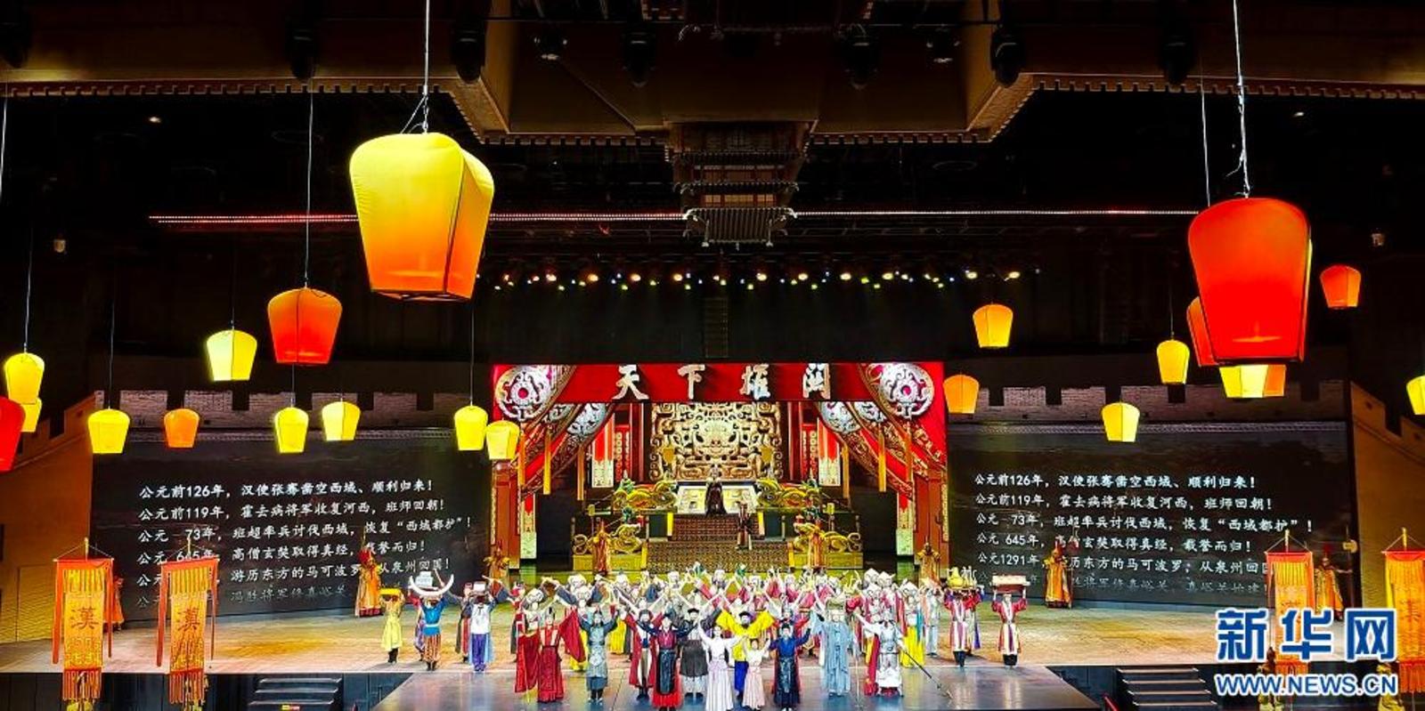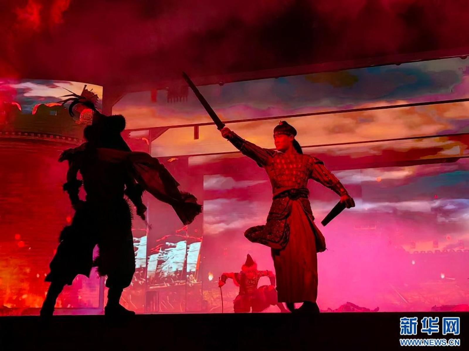9月19日晚,歌舞剧《天下雄关》在甘肃嘉峪关·关城里景区上演。该剧以张骞、霍去病、玄奘等人物为题材,通过歌舞、杂技、武术等多种艺术形式,辅以先进的3D全息投影、3D飞行、高空威亚、水幕与流沙等高科技手法,为观众带来一场视听盛宴。新华网发(宋昱静 摄)