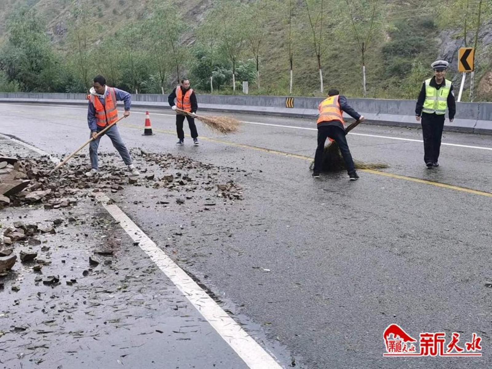 新天水讯【通讯员王小强王强】10月6日上午9时许,张家川公路段巡查人员发现G566线K207+460处路面上有掉落的大石头,影响车辆安全通行,遂在交警协助下及时清理落石,第一时间消除了安全隐患,确保行车安全。