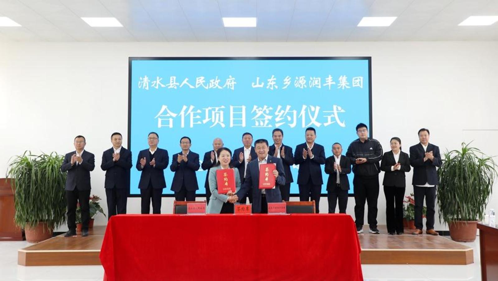 在与会人员的见证下,清水县人民政府和山东乡源润丰生态发展集团有限公司相关负责人签订了项目合作协议。清水县政府与乡源润丰集团成功签约,既是清水发展的良好机遇,也是双方合作新的起点,必将对清水县域经济高质量发展注入强劲动力、增添新的活力。