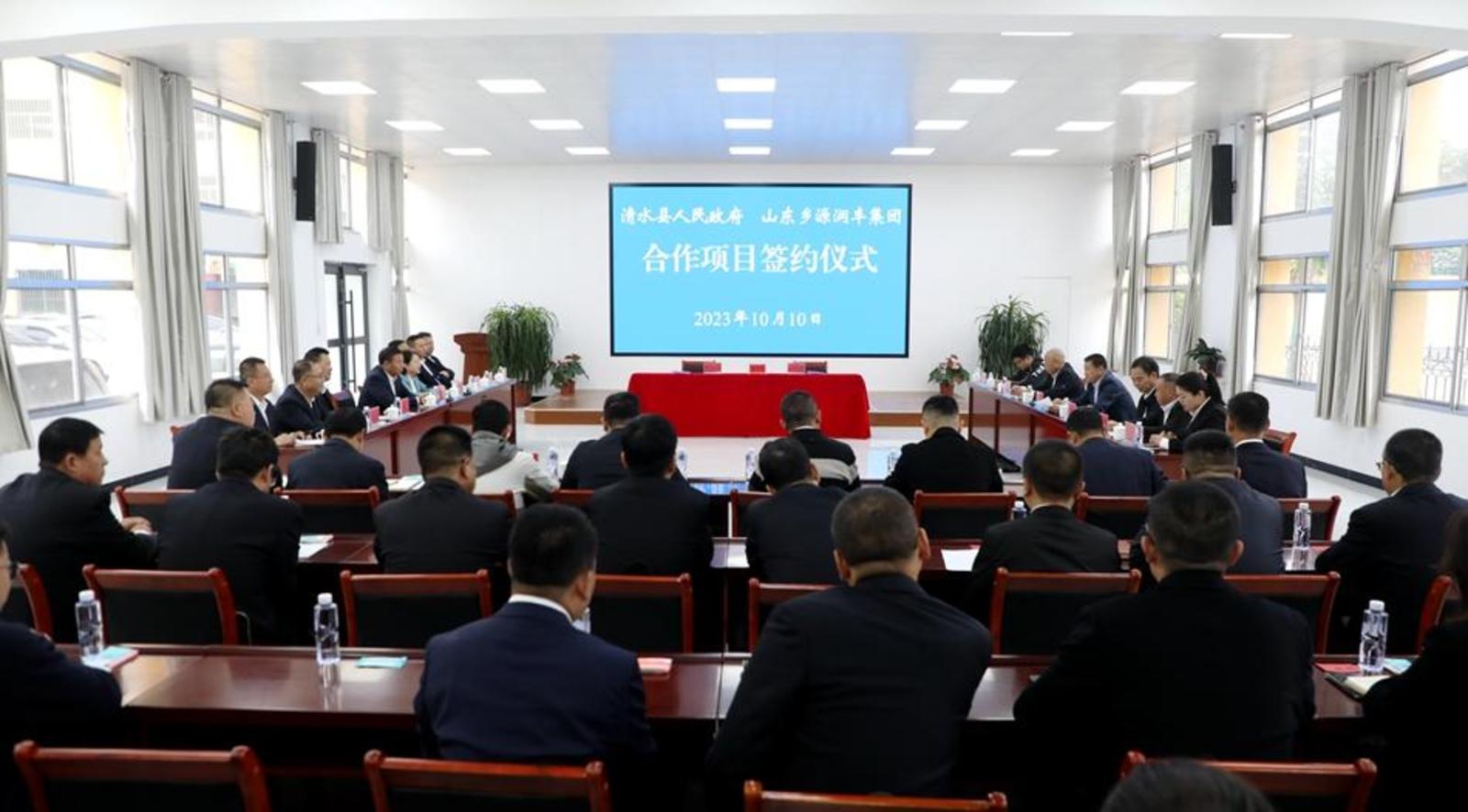 新天水讯 据清水县融媒体中心消息 10月10日,清水县人民政府与山东乡源润丰生态发展集团有限公司举行合作项目签约仪式。市政协副主席、清水县委书记马越垠,山东乡源润丰生态发展集团有限公司董事长刘杰,县领导李菊霞、丁旺喜、蔡俊杰等出席签约仪式。