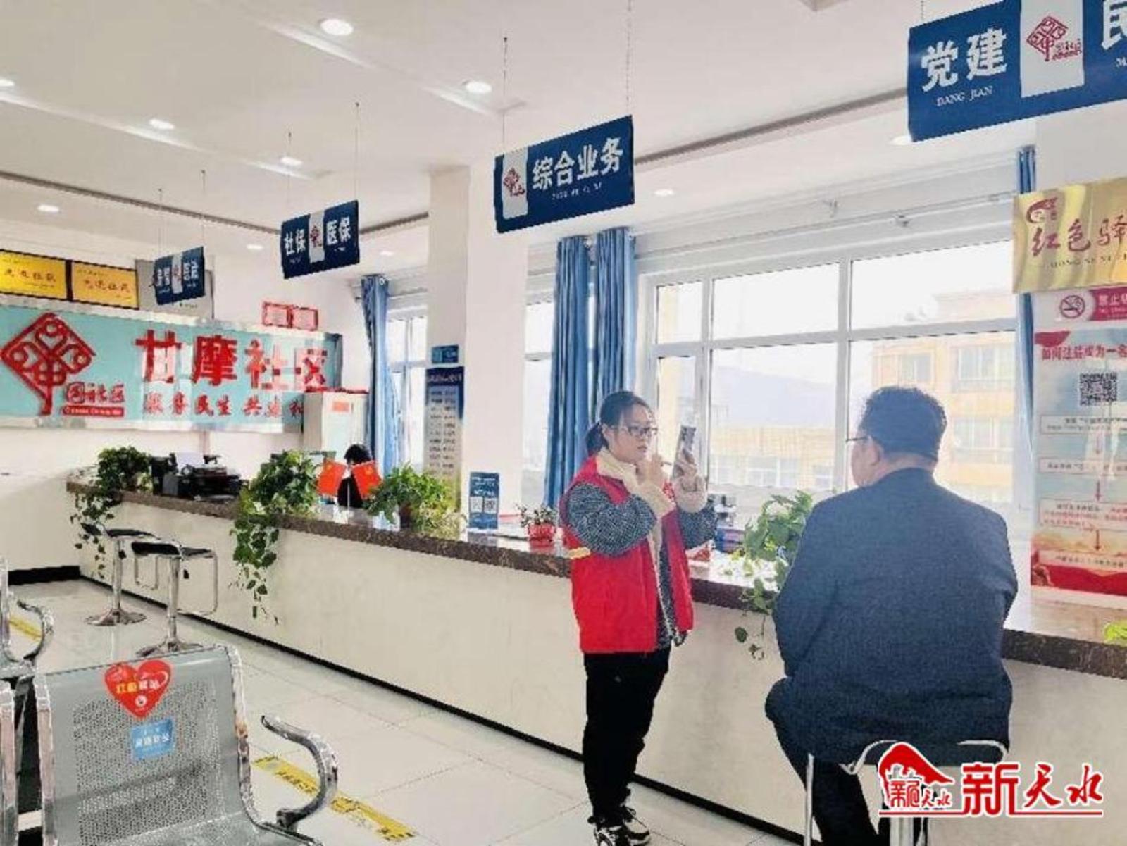 新天水讯 连日来,甘谷县新兴镇甘摩社区开展城乡居民基本养老保险待遇领取资格认证工作。