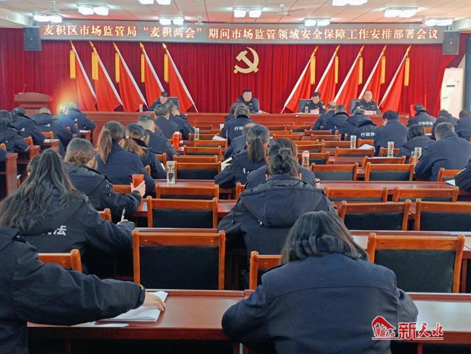 新天水讯 12月25日,麦积区市场监管局召开2024年元旦、春节期间市场监管领域专项整治工作动员部署会议,全面部署开展专项整治工作,切实消除食品、药品、特种设备和重点工业产品安全风险隐患,守护市场安全,确保人民群众在节日期间吃得安心、买得放心、用得舒心。