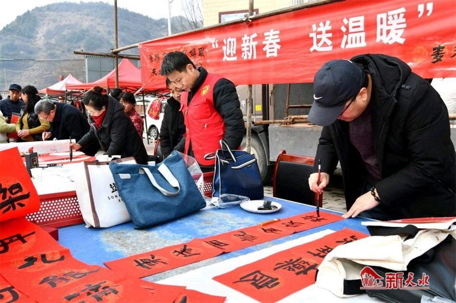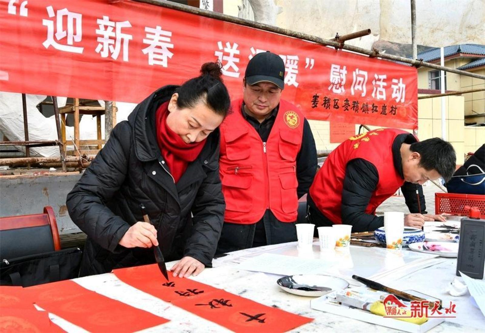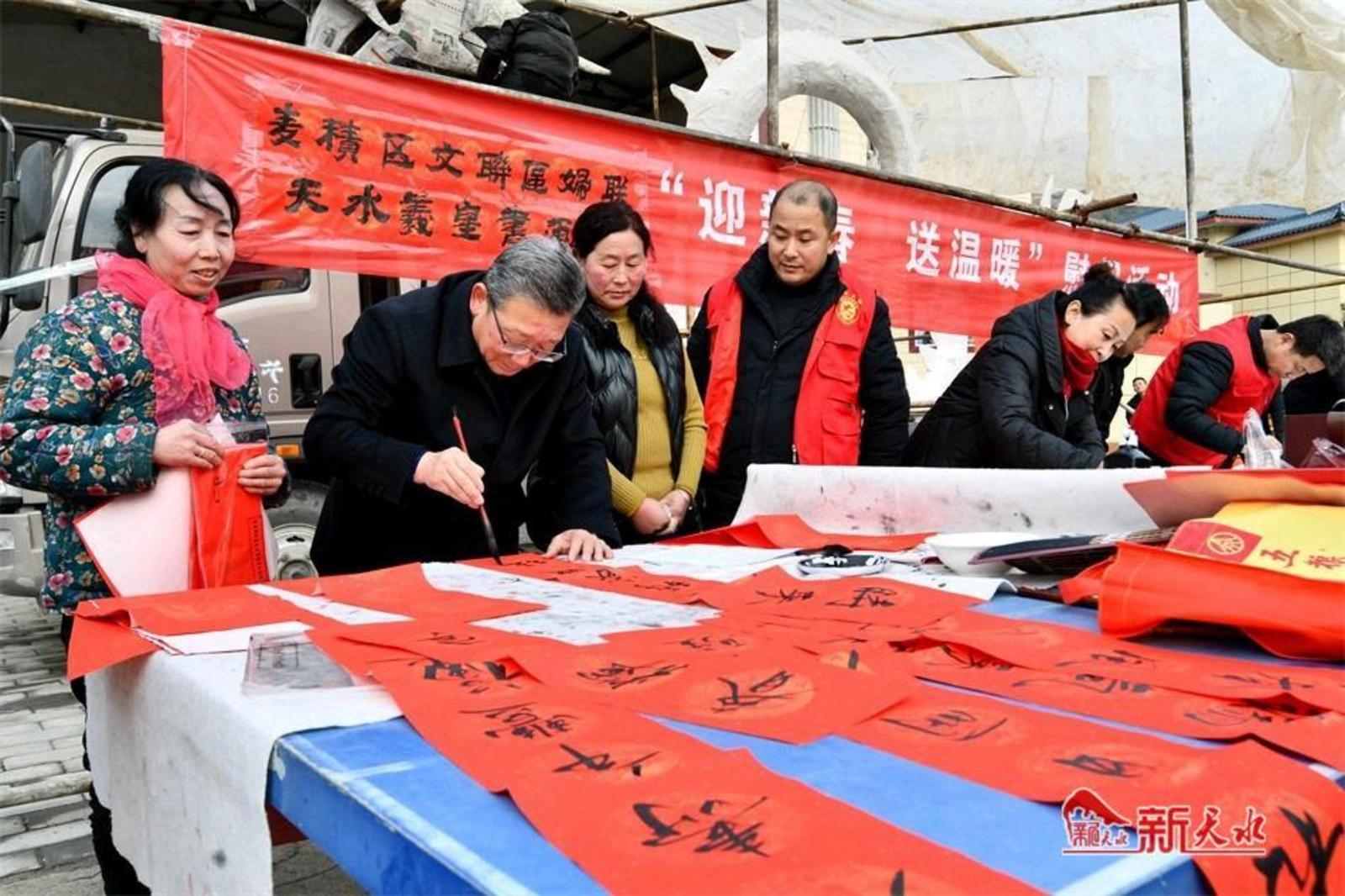 新天水讯【特约通讯员窦耀辉 通讯员窦艺】2月1日,麦积区文联、区妇联携手天水羲皇书画院走进麦积镇红崖村开展“迎新春、送祝福”活动。