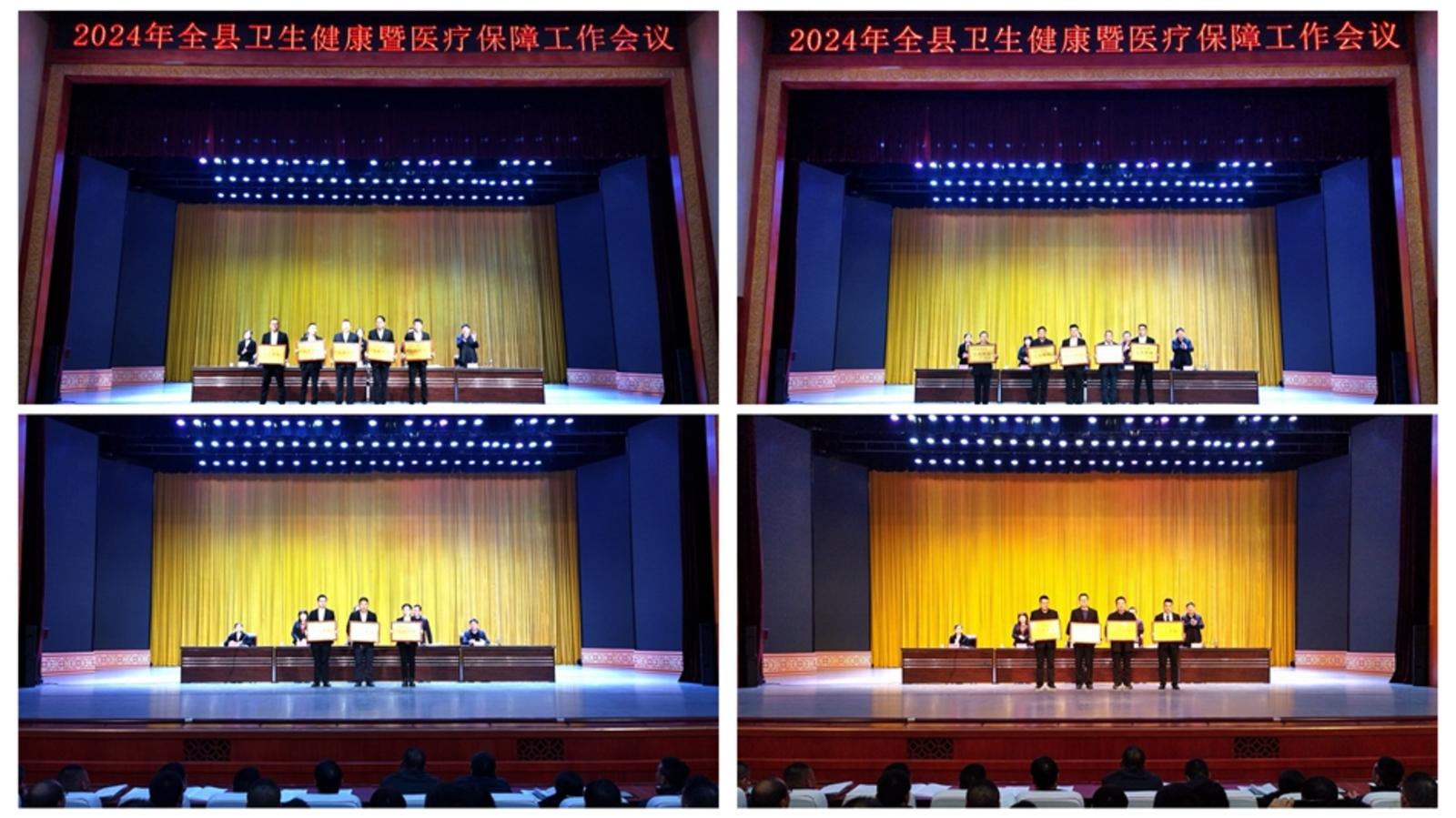 会议表彰奖励了2023年度全县卫生健康工作先进单位。县医院、县中医医院等单位负责人作了交流发言。