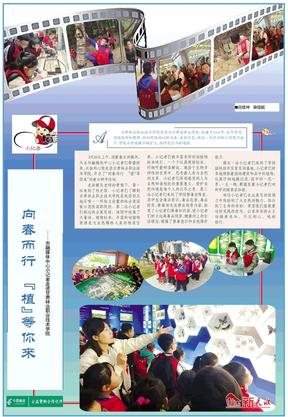 3月16日上午,迎着春日的微风,天水市融媒体中心小记者们带着好奇、兴奋的心情走进甘肃林业职业技术学院,开启了“向春而行 ”植“等你来”的春日研学活动。