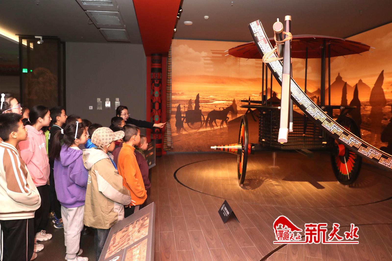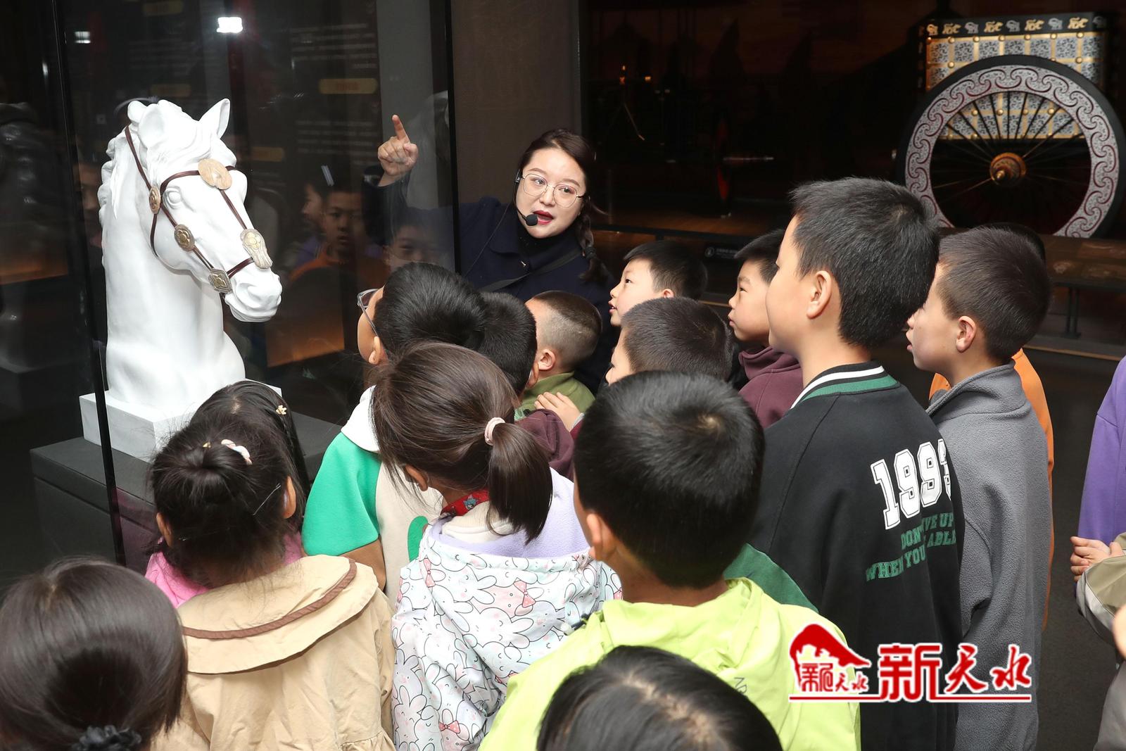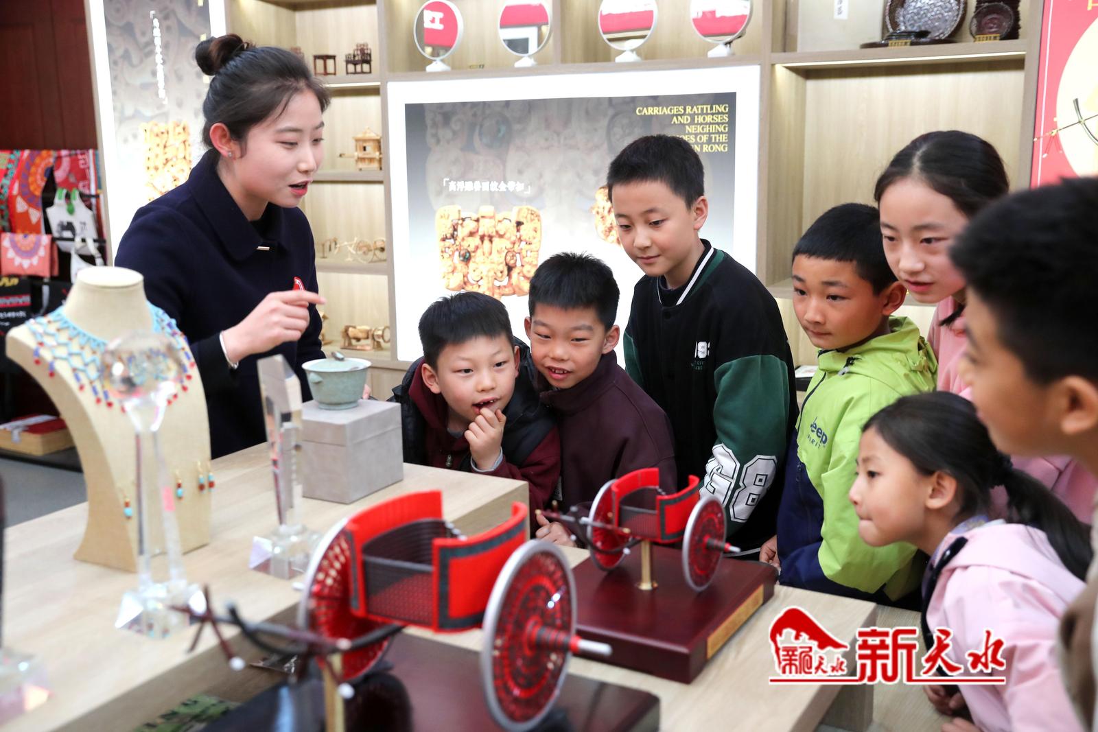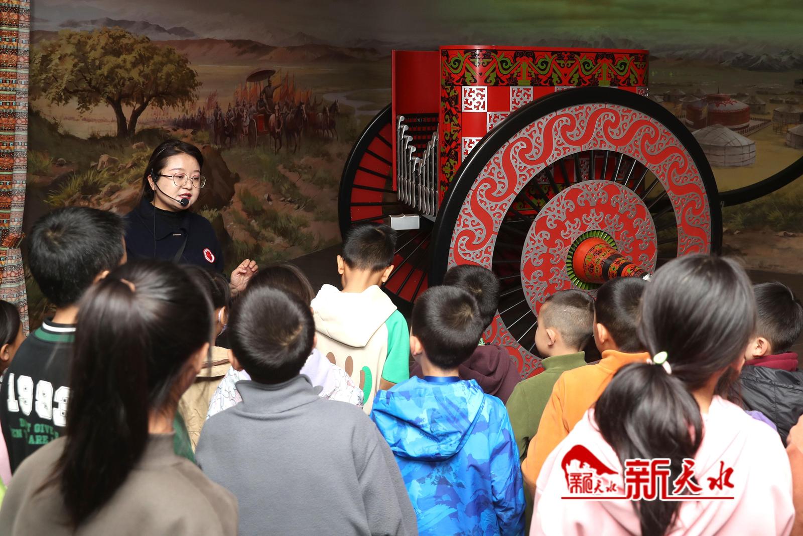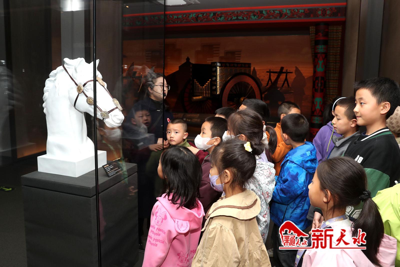 4月23日,张家川县马家塬车舆博物馆内孩子们津津有味地听着讲解员的讲解。
