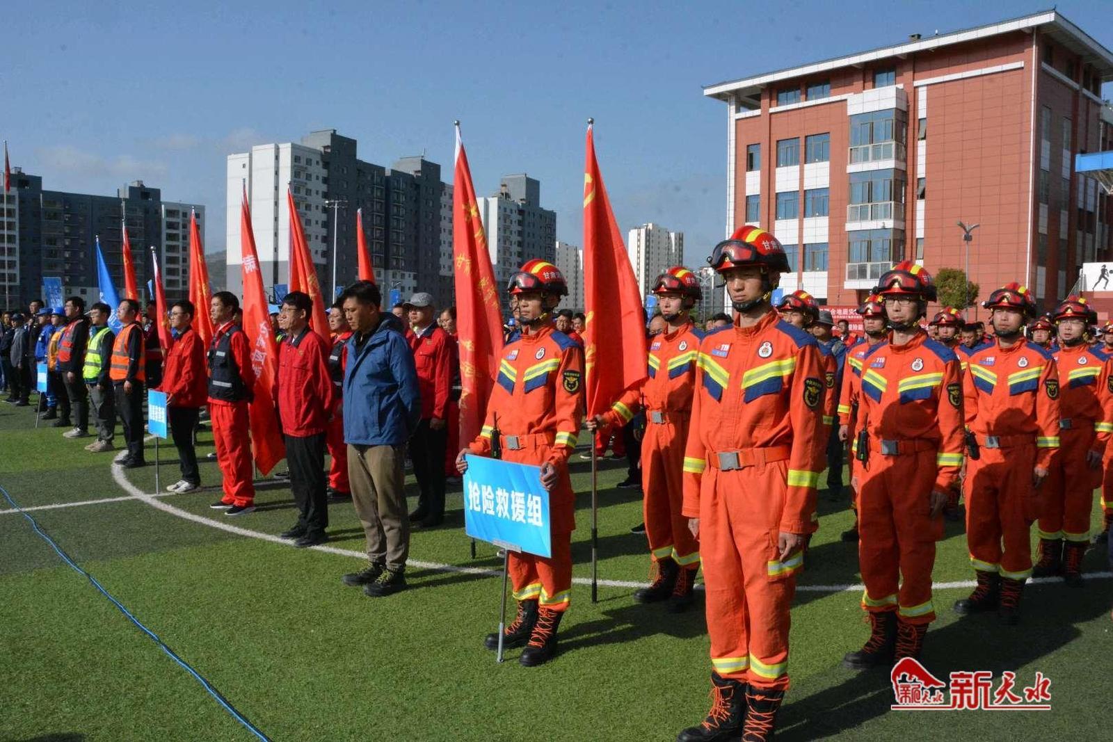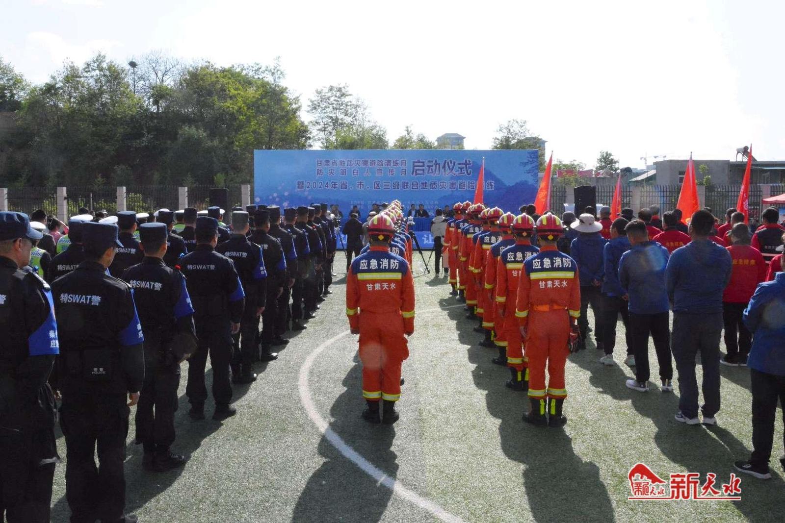 新天水讯【记者马凯】4月25日,甘肃省地质灾害避险演练月启动仪式暨2024年省、市、区三级联合地质灾害避险演练在天水市秦州区玉泉中学举行。省自然资源厅二级巡视员徐东,副市长、公安局局长郭庆祥出席活动。