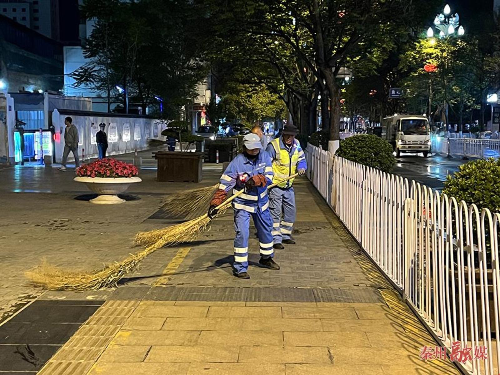 “全力提升辖区环境卫生质量,延长清扫保洁作业时间,按照安排,抽调各部门业务骨干充实主城区清扫保洁力量,全力保障四合院周边环境卫生干净整洁。”秦州区大城环卫所副所长王晓东说。