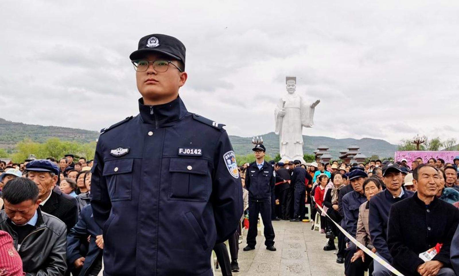 记者在轩辕广场看到,广场设有两个进场口,安保人员对入场人员进行严格安检,在演出现场设立安全警戒线,配备专业的武警和执勤人员,分布在观众席和舞台周边,维持现场秩序。