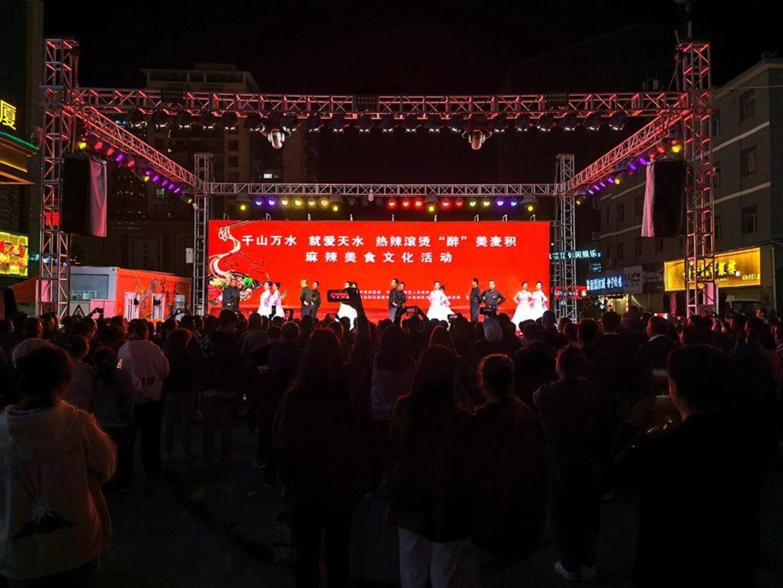 新天水讯 据麦积区融媒体中心消息【记者刘秋钰 李文涛】5月1日晚,麦积区老年大学助力天水麻辣烫专场文艺演出在商埠路步行街精彩上演。