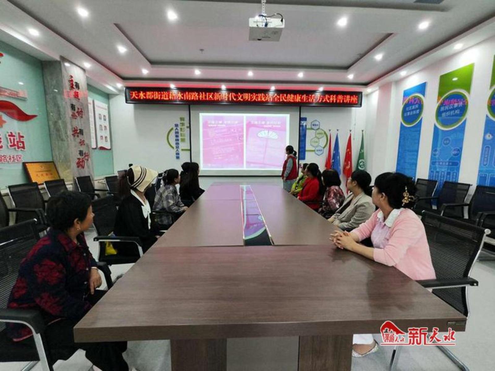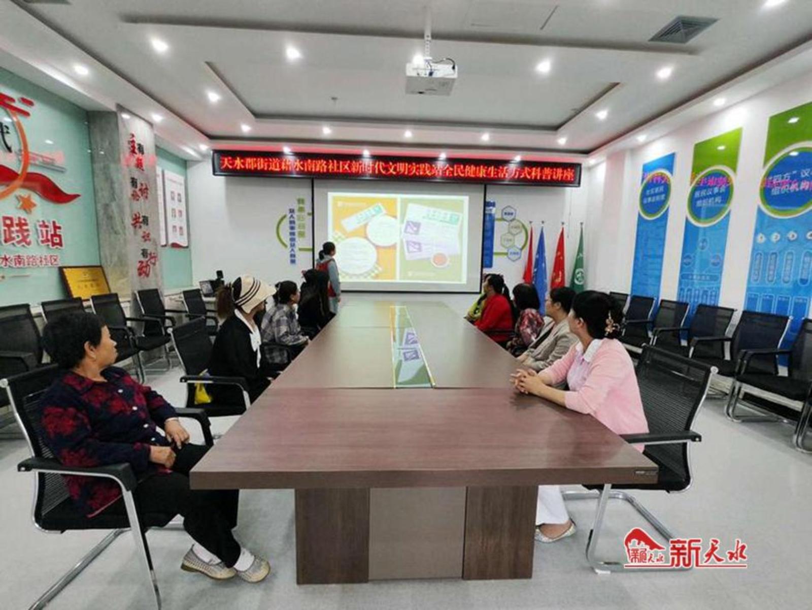 新天水讯 9月6日,秦州区天水郡街道藉水南路社区新时代文明实践站举办全民健康生活方式科普讲座,以进一步倡导和推进文明健康生活方式,提高辖区居民自我保健意识和健康素养。