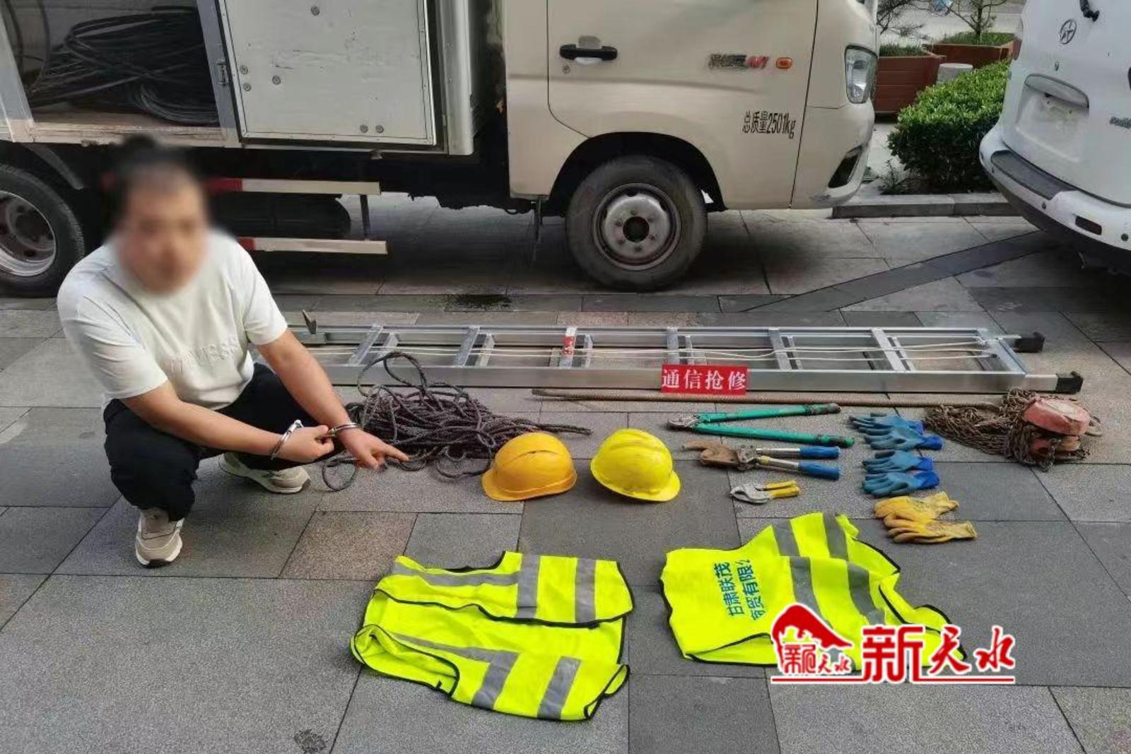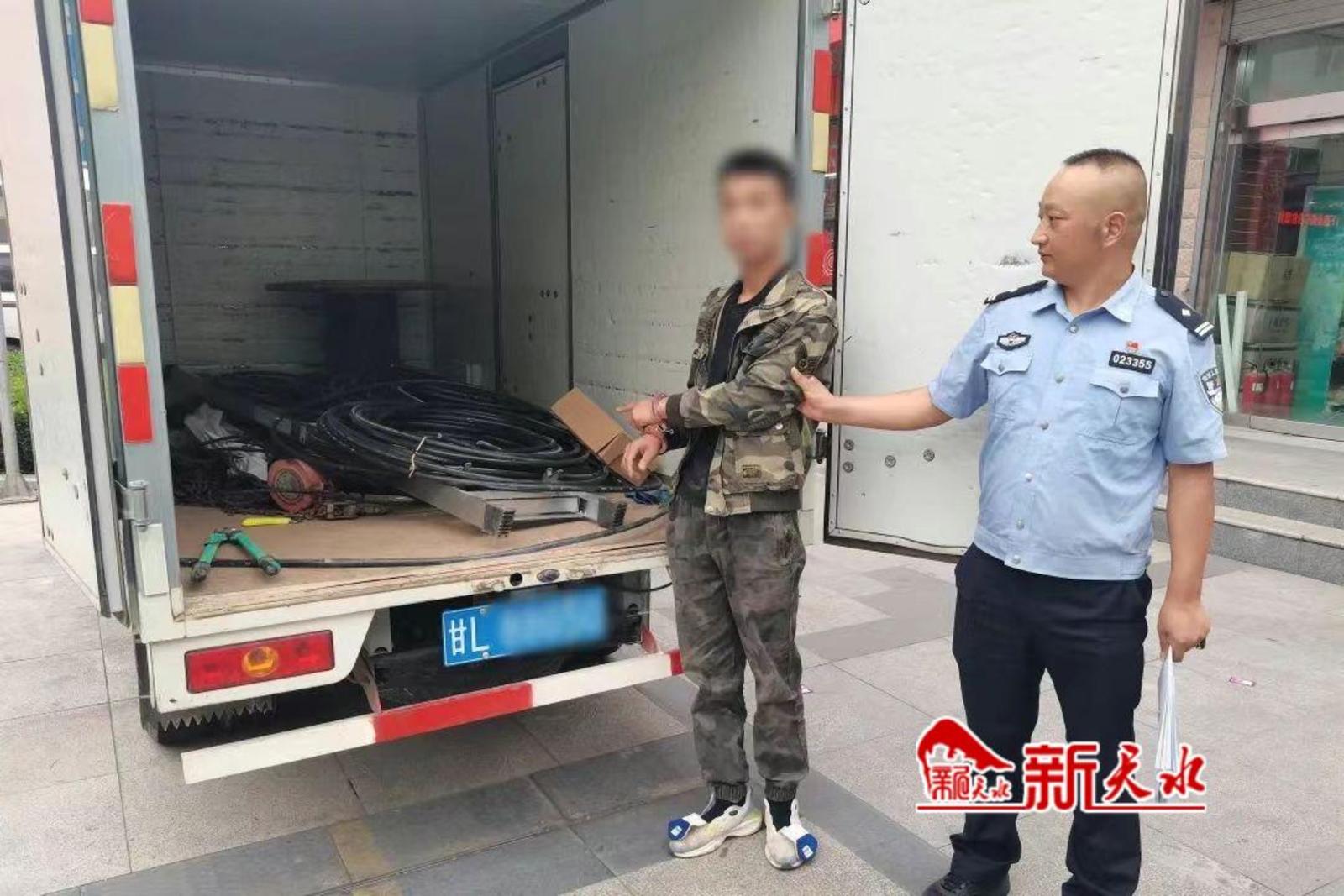 新天水讯【记者裴婷婷 张雷】自称通讯抢修人员,在小区有条不紊地“施工”,不小心划伤了一旁停放的车辆。面对民警的追问,两男子慌张不已,最终现出“原形”。近日,市公安局麦积分局道南派出所成功将两名冒充“维修工”偷电缆的“戏精”男子抓获。