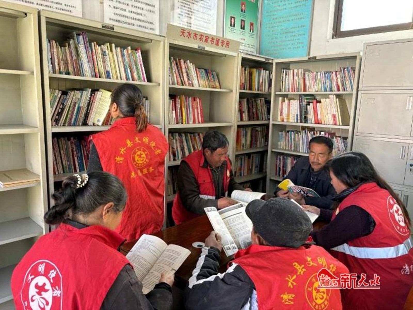 新天水讯 近期,清水县金集镇充分利用农闲季节组织各村志愿者在农家书屋指导广大群众开展读书活动,通过阅读来提高大家的科学文化素养,助力产业发展和乡村振兴。