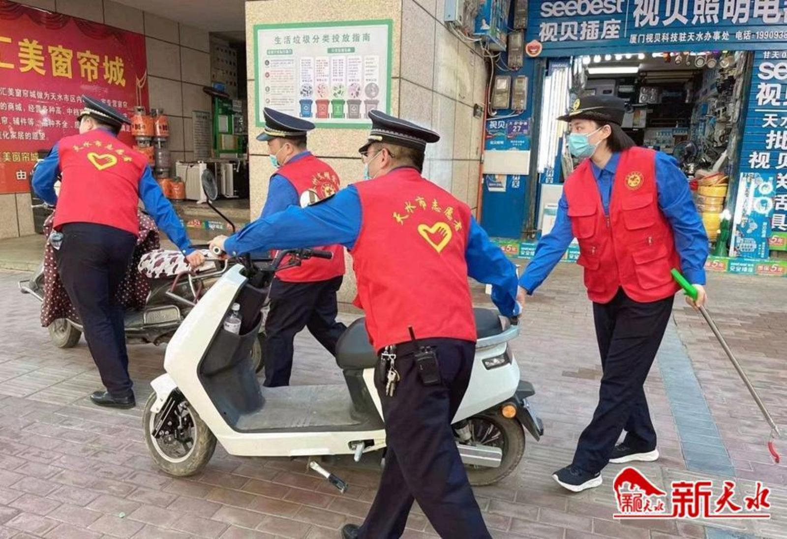 狠抓市容环境,擦亮城市底色。按照“整治一处,规范一片”的原则,将农贸市场、校园、医院、商场、车站等周边区域作为重点监管路段,定人定点值守,把市场外溢、乱设摊点、占道经营、乱停乱放等城市乱象作为重中之重,在蔬菜、瓜果上市时段加强巡查力度,采取“错时执勤、延时执法、超时坚守”模式,根治城市管理顽疾。整治行动中共规范店外经营、倚门经商、占道作业11795家,下发《责令限期改正通知书》2320份,发放疫情防控温馨提示牌4500块,清理流动摊点12650余处,规范非机动车辆15747辆,拆除未经审批的户外广告牌130余处,清除破损违法条幅658处,清除乱张贴小广告及破损对联1.4万余处,施划和修补非机动车位1339处,增设各类提示牌、标识牌、宣传牌155块。严格督促落实“门前四包”责任制,推行“红黑脸”考评制度,督促沿街各单位、经营户,将责任区域内的地面、建筑物立面、停放点、秩序、环境、卫生、绿化、设施等对照“五好一高”标准进行维护,让城市底色更清澈。