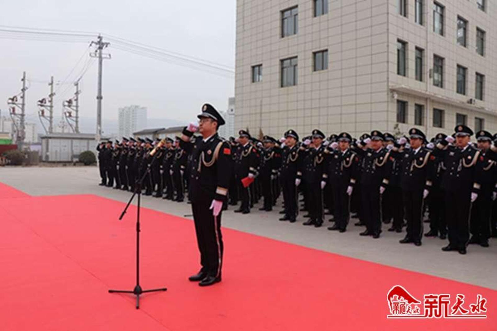 新天水讯 1月10日,秦安县公安局隆重举行庆祝第三个中国人民警察节升警旗暨宣誓仪式,以进一步增强队伍凝聚力和战斗力,营造热烈喜庆的节日氛围,增强全警职业荣誉感、自豪感和归属感。