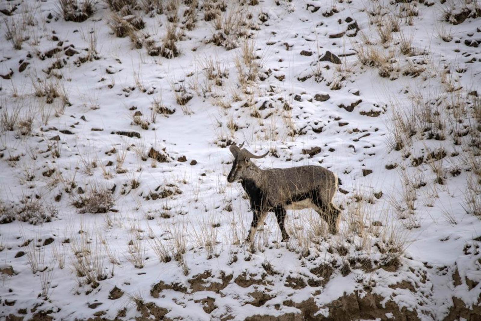 1月14日,岩羊在祁连山区活动。