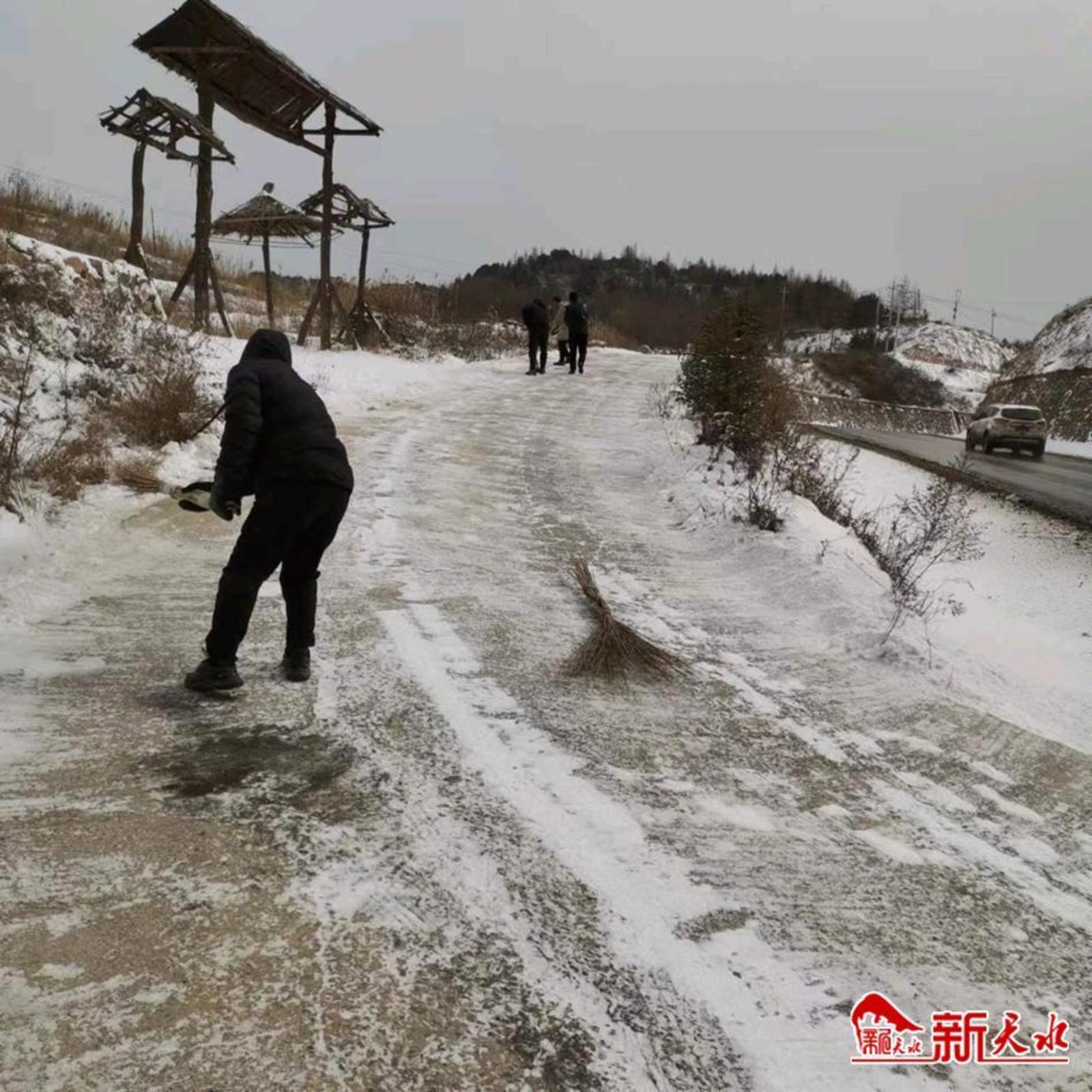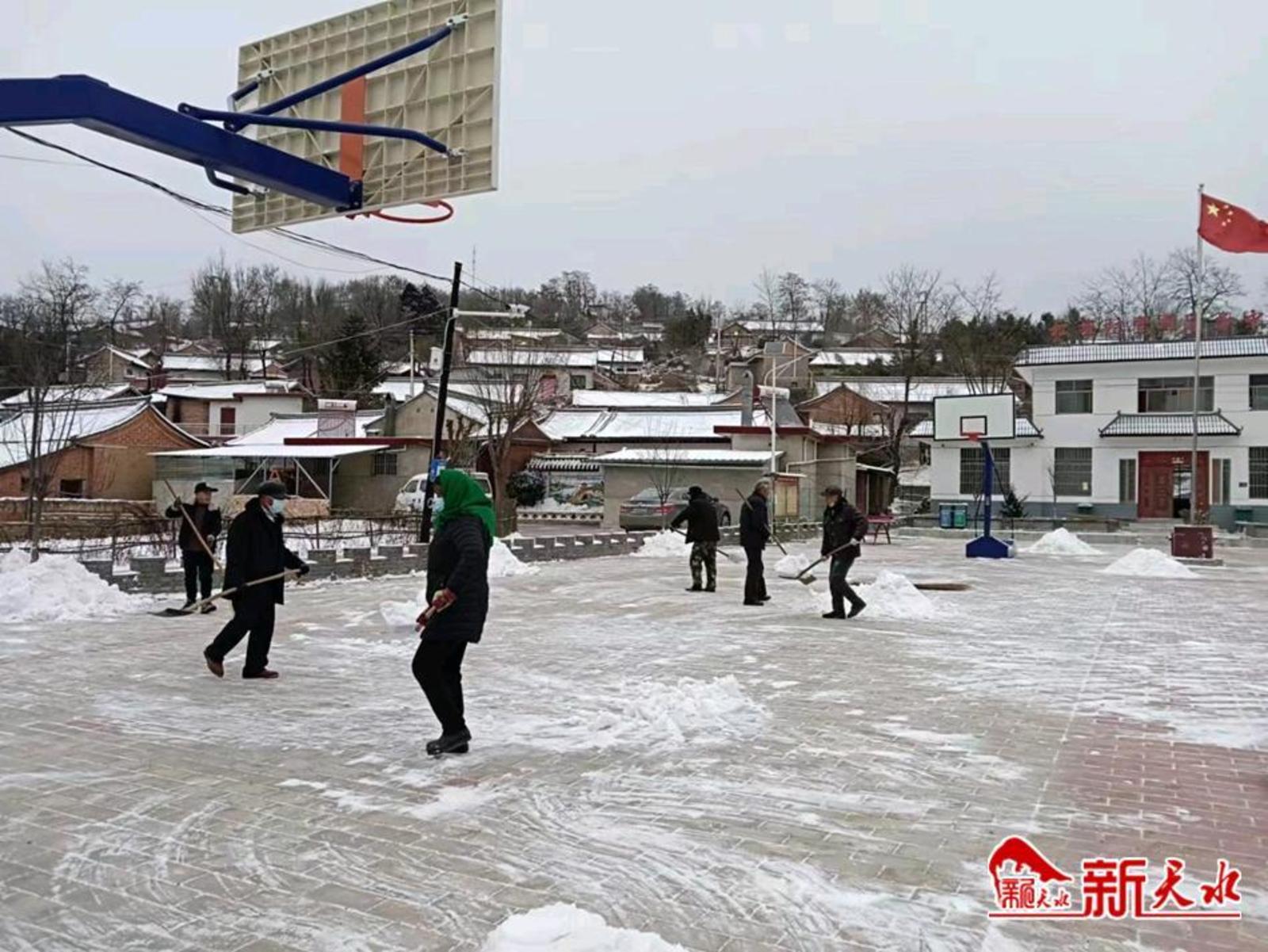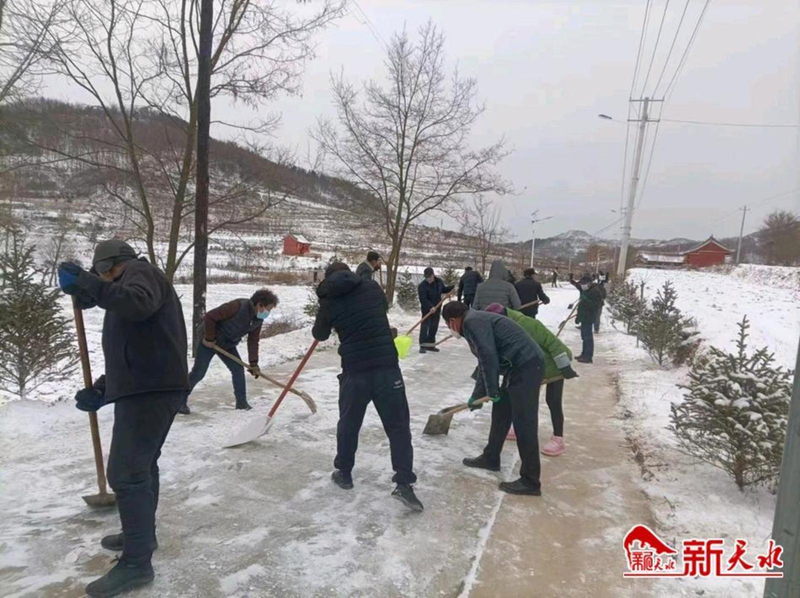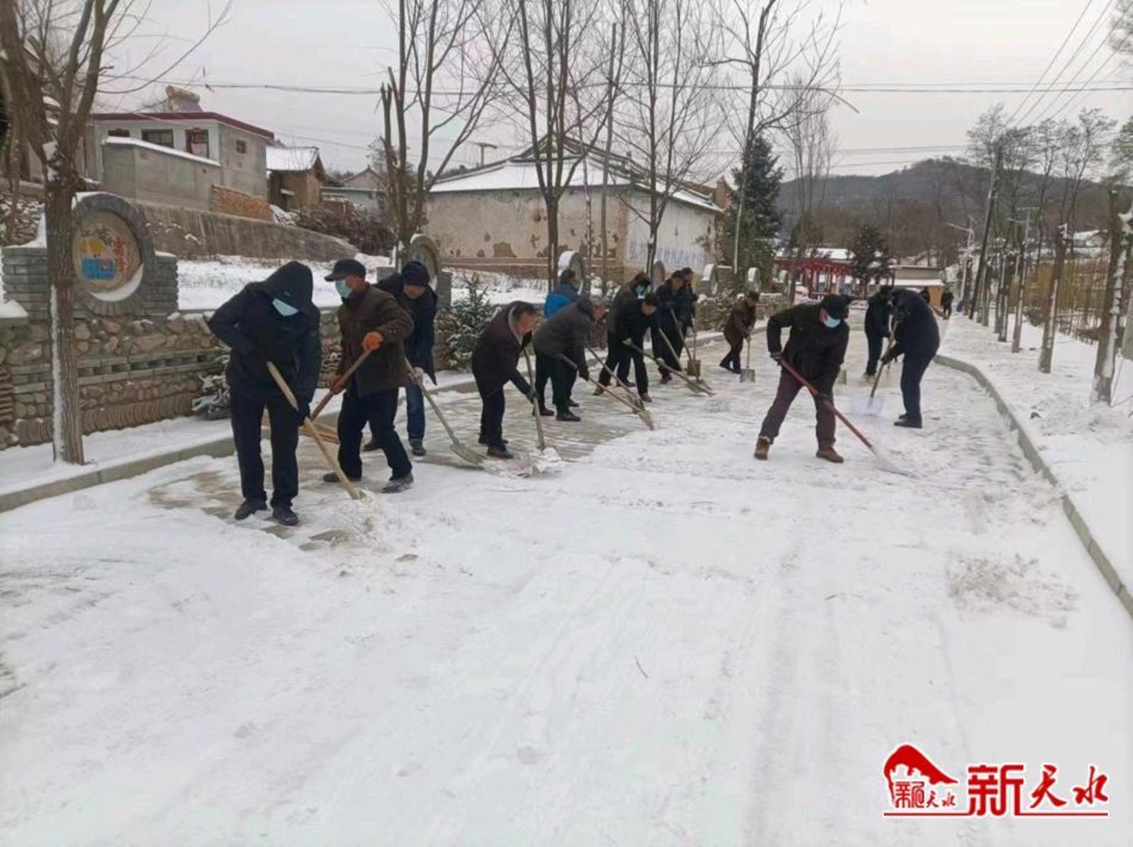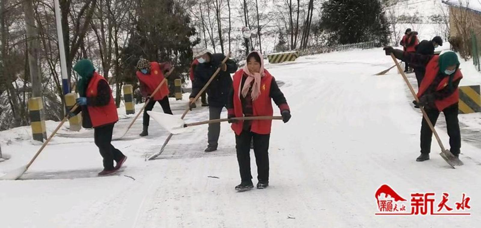 新天水讯【通讯员 马旭辉】1月15日开始,连着两天降雪,秦州区齐寿镇的各条镇村道路铺上了一层厚厚的冰雪,为了不影响群众出行购物,尽快消除交通安全隐患,齐寿镇组织党员干部和志愿者在全镇范围内积极开展清雪行动。
