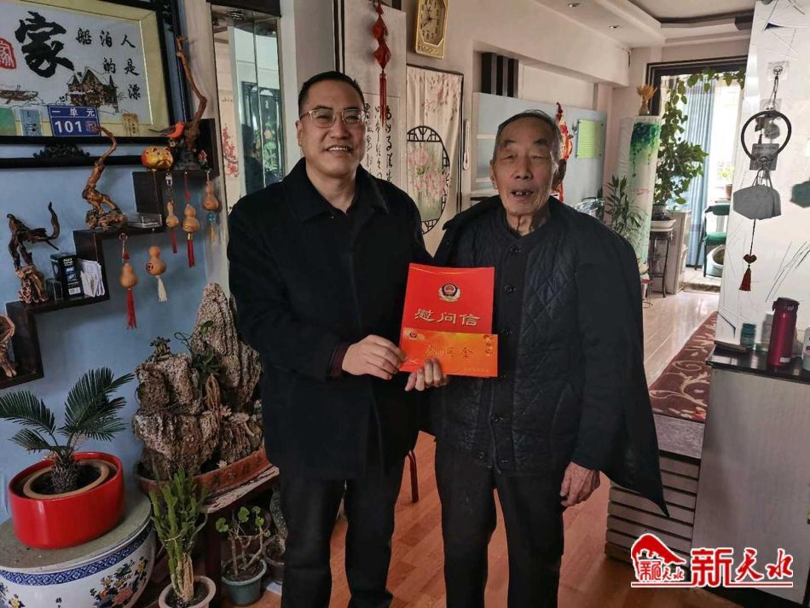 随后,他们看望慰问了市公安局离退休老干部,送上慰问信和慰问金,与老干部进行了亲切交谈,详细询问老干部及其家人的身体状况和生活情况,简要介绍了市公安局一年来的工作情况和取得成绩,并感谢他们对天水公安事业做出的贡献、智慧和力量,对他们一如既往地关心支持公安事业表示崇高的敬意,希望他们继续发挥余热,积极为全市公安工作建言献策,衷心祝愿老同志新春快乐、身体健康,阖家幸福。