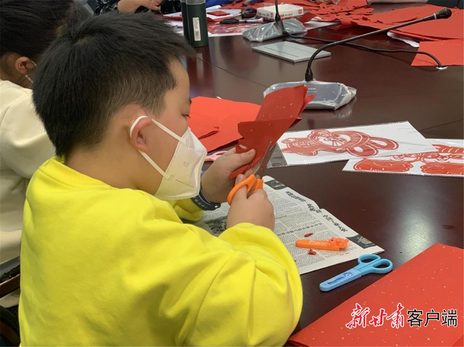 兰州市博物馆孔瑛老师还带领学生们共同创作剪纸作品。在孔瑛老师耐心讲解和细心指导下,学生们很快进入创作状态,专心致志地修剪手中作品,体验传统技术的非凡之处,锻炼自己的动手能力和艺术创作能力。大家剪出来的作品栩栩如生,有活灵活现的小兔子、有惟妙惟肖的福娃、还有生动逼真的窗花……一张张剪纸,让孩子们感受到了传统民俗的魅力,给即将到来的春节增添了欢乐的气氛。
