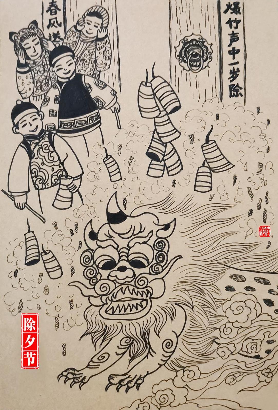 除旧布新贴年红,爆竹声中辞旧岁,烟花漫天迎新年。