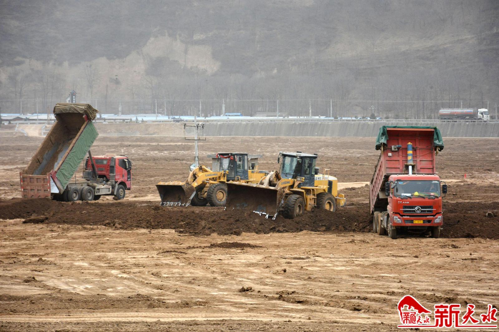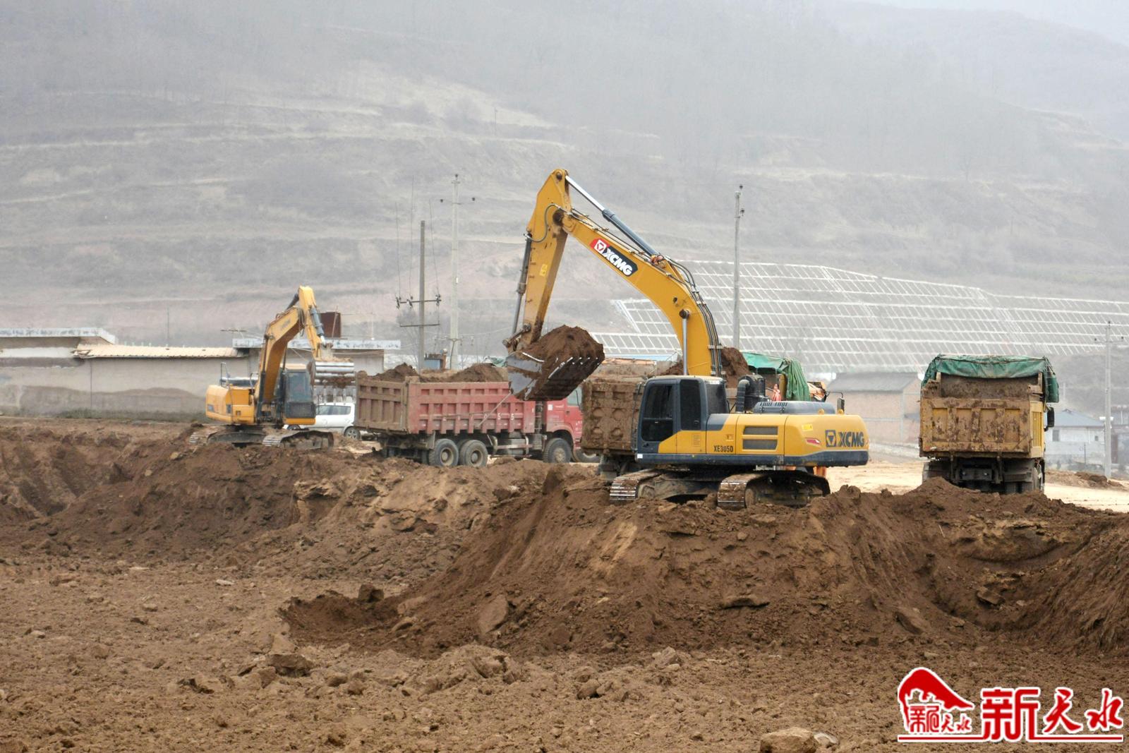 1月15日,尽管已经临近春节,但清水县黄门镇复合陶瓷耐材一体化综合循环利用项目建设现场依然是一派热火朝天的施工场面。记者看到,宽阔的项目场地基本平整完成,十几辆大型机械和车辆来回穿梭,往外运送土方,确保来年项目建设如期开工。