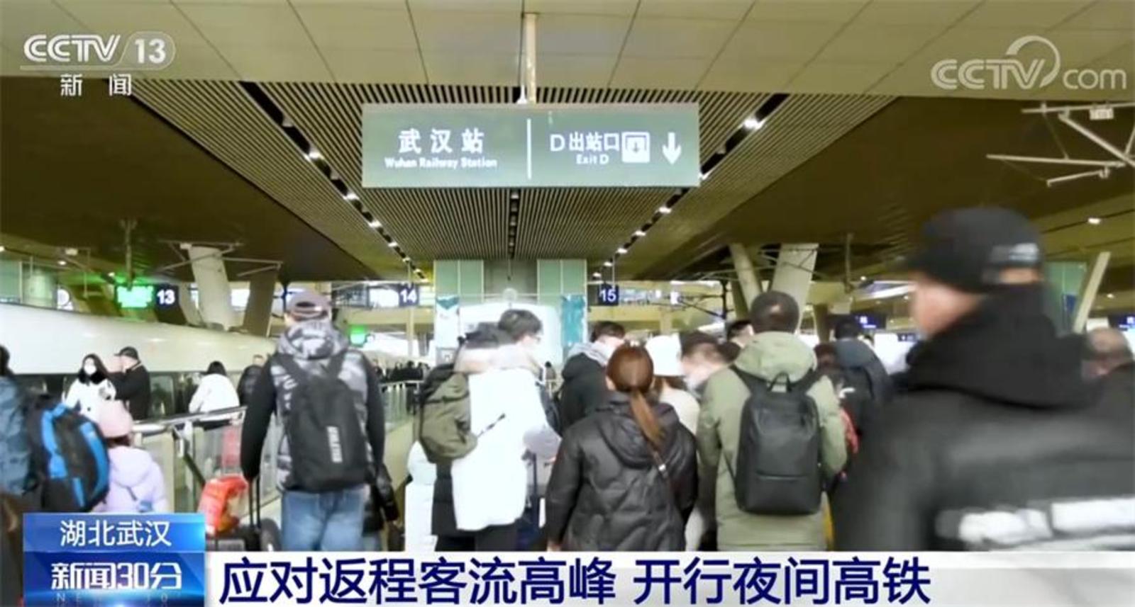 在湖北,武汉客运站昨天迎来节后第一波客流高峰,预计发送旅客70万人次。为应对前往广州、北京、上海等地的客流,铁路部门加开57对夜行高铁。